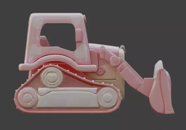 This premium 3D asset features a stylized bulldozer reimagined with a romantic and playful cartoon aesthetic.