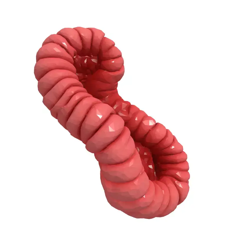 This 3D model presents a stylized abstract figure-eight shape formed by a twisted, ribbed tube. Ideal for various creative projects, including digital art, abstract visualizations, and surreal scenes. It can be used in game development as a decorative element, a unique game asset, or even part of a larger, more complex structure. The model is also suitable for architectural visualization, adding a touch of modern art to interior spaces. Available in multiple formats (GLB, OBJ, STL, FBX), this model is optimized for both real-time and static rendering applications. Key features include clean topology, smooth curves, and a visually appealing aesthetic. The model is UV unwrapped and includes PBR textures, making it ready for customization and integration into diverse projects. This asset provides a versatile and visually striking element to enhance your creative workflow.