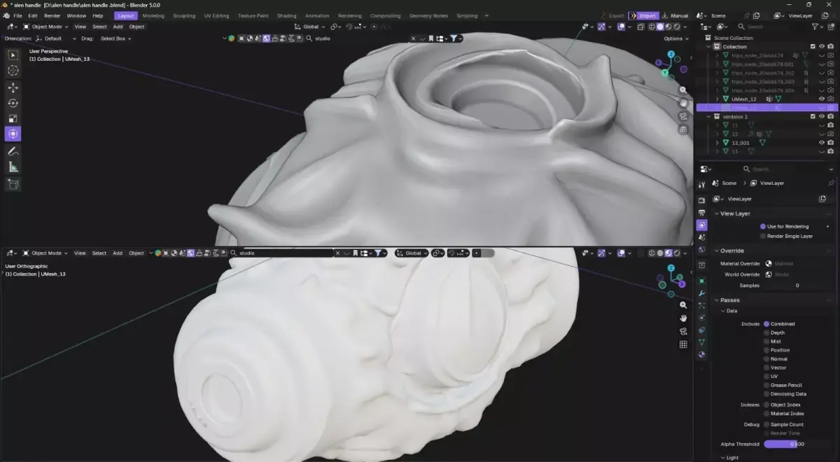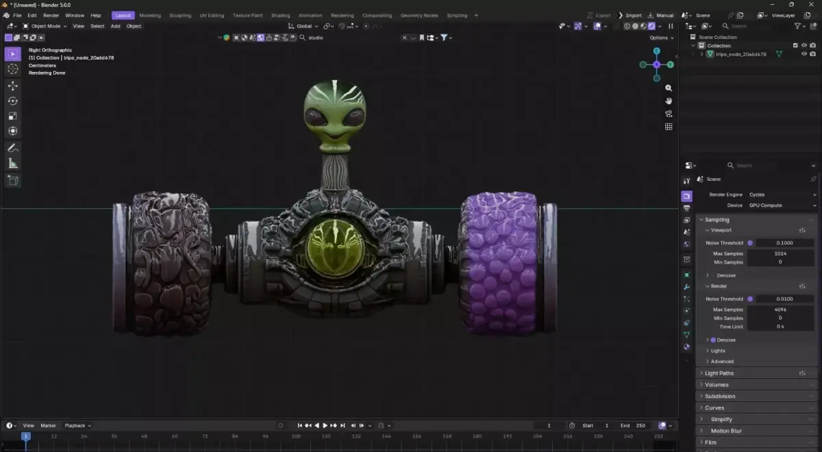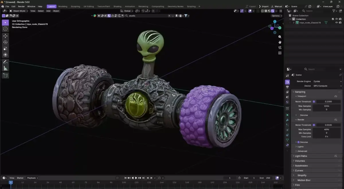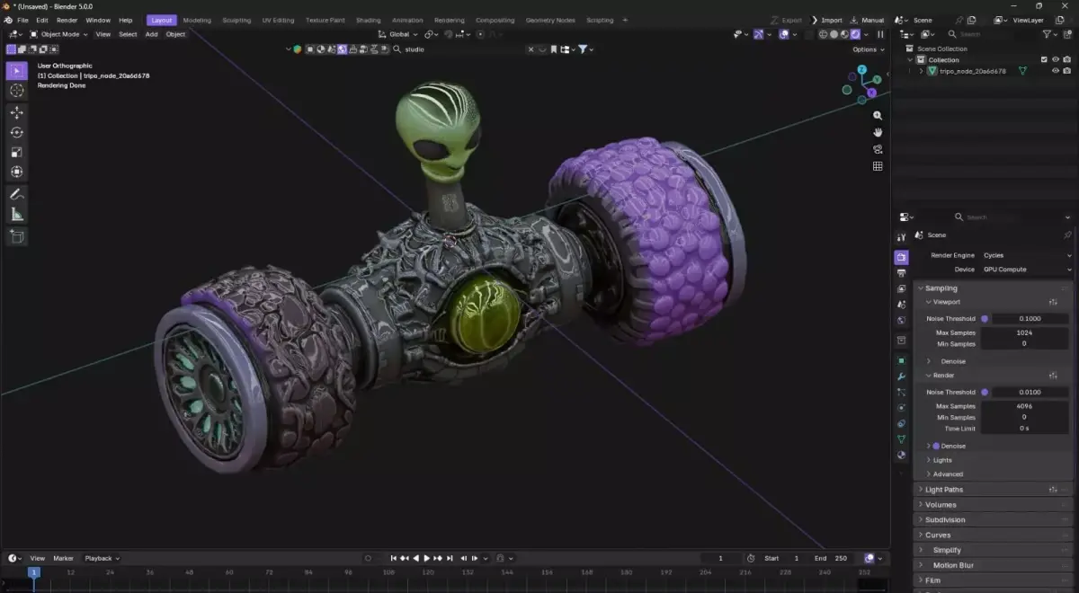 Highly detailed stylized alien sci-fi mechanical device featuring organic sculpted surfaces combined with hard-surface mechanical elements. Designed with a unique futuristic aesthetic suitable for games, cinematic renders, collectibles, and sci-fi environments.