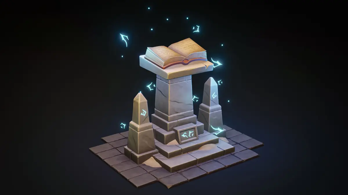 Stylized Magic Altar, A game-ready 3D asset designed for fantasy or RPG environments. This altar features an ancient open book and runes particles, perfect for use in video games or anything else.