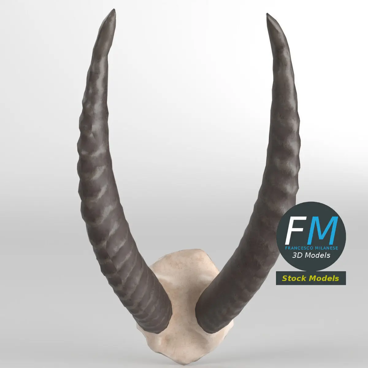 Low poly stylized animal horns (impala, maybe) 3D Model. Production-ready 3D Model, with PBR materials, textures, non overlapping UV Layout map provided in the package.Quads only geometries (no tris/ngons).Easily customizable: UV unwrapped geometries; UV Layout maps provided in the package as png with alpha images.Each Object, Material or Texture provided in the package has a unique, meaningful name.Made in Blender 4.3.2 with Cycles Principled BSDF PBR shader with textures included (Eevee compatible), then exported to OBJ and FBX; materials and textures made in Substance Painter (Adobe 3D Painter), exported for PBR, Cycles, V-Ray, Unity, Unreal.PROMO IMAGES: the first image has been rendered in Cycles for Blender; in particular, you can find 11+ promo images in this description: