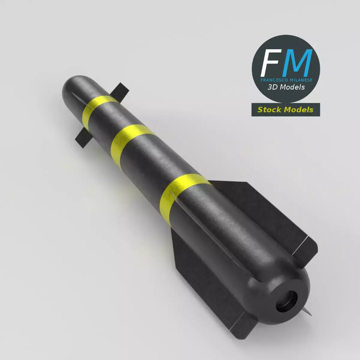 Stylized anti-tank guided missile inspired by the AGM-114 Hellfire, suitable for military scenes, simulations, and real-time applications. 1 Object, 1 Material with non overlapping UV Layout Map and PBR Textures set. Production-ready 3D Model with non overlapping UV Layout map provided in the package. PBR Materials and Textures (Metallic Workflow: Base Color, Metallic, Roughness, Normal) embedded in the Blend, FBX, and GLB files.Easily customizable: UV unwrapped geometries; UV Layout maps provided in the package as png with alpha images.Quads-only geometry.Made with Blender 5 with Cycles Principled BSDF (PBR, Metallic Workflow) Material, then exported to other formats (OBJ, FBX, GLB; FBX and GLB have embedded textures).Promo images: some renderings made with Cycles for Blender, plus Wireframes and Blender screenshots (Object Mode, Edit Mode with UVs).Formats included: FBX with embedded PBR Textures (Metallic Workflow: Base Color, Metallic, Roughness, Normal), GLB with embedded PBR Textures (Metallic Workflow: Base Color, Metallic, Roughness, Normal), OBJ; scenes: BLEND (with Cycles Principled (PBR) Materials); other: 16-bit PNGs with Alpha.1 Object (mesh), 1 PBR Material, UV unwrapped (non overlapping UV Layout map provided in the package).UV Layout maps and Image Textures resolutions: 2048x2048.Polygonal, QUADS-ONLY, 8762 vertices, 8752 quad faces (17504 tris).Real world dimensions; scene scale units: METERS in Blender 5 (that is: Metric with 1.00 scale).Uniform scale object (scale applied in Blender 5).PBR Textues included: in a zipped folder, you'll find the PBR Textures set (as 16-bit PNGs with Alpha).IMPORTANT --- Main renderings made with Blender 5 + Cycles using an HDR Environment Texture Image which is NOT provided in the package!