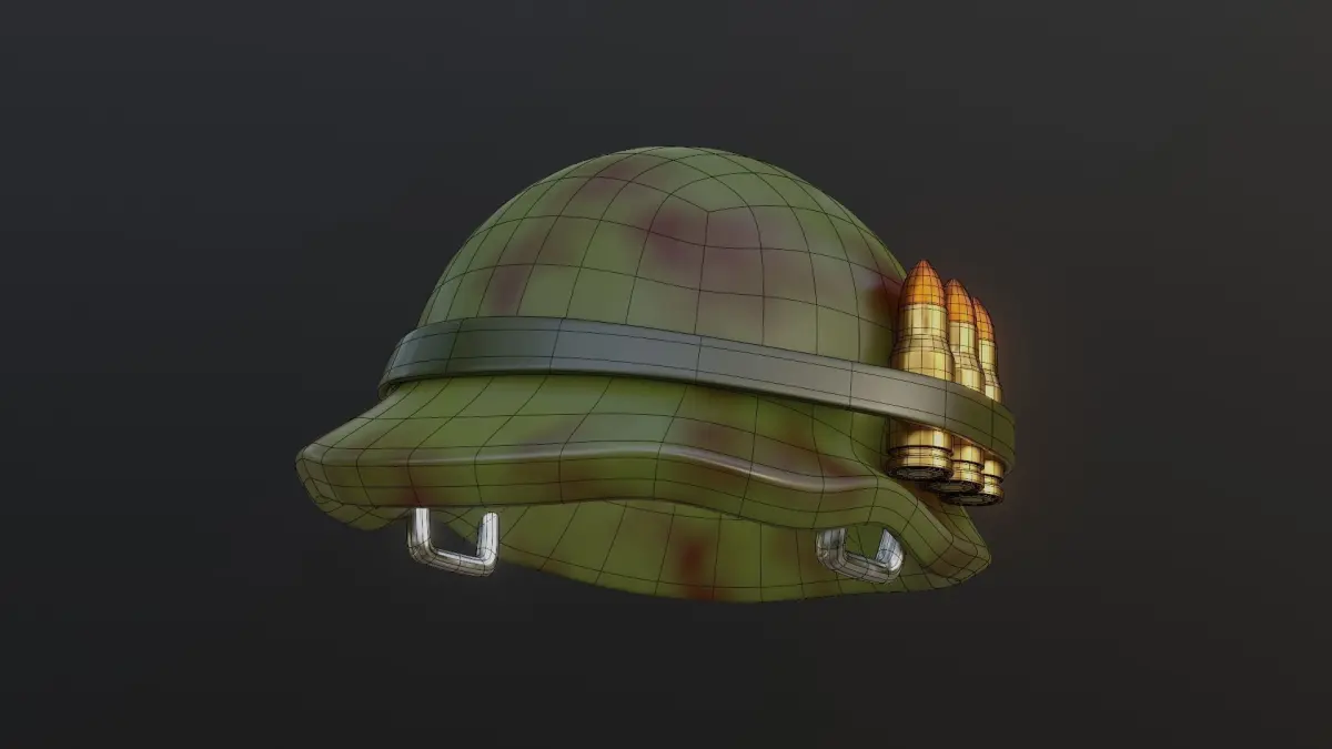 Key Features - Stylized army helmet with bullet detail modeled into the mesh (not separate)