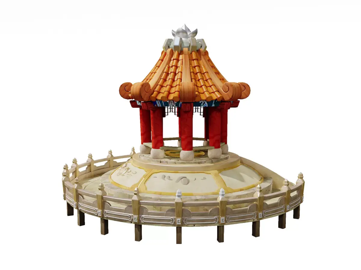 Home Catalog Stylized Asian Pavilion - Game-Ready Circular Plaza Landmark 3D model