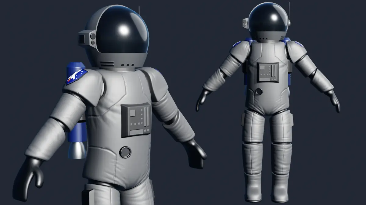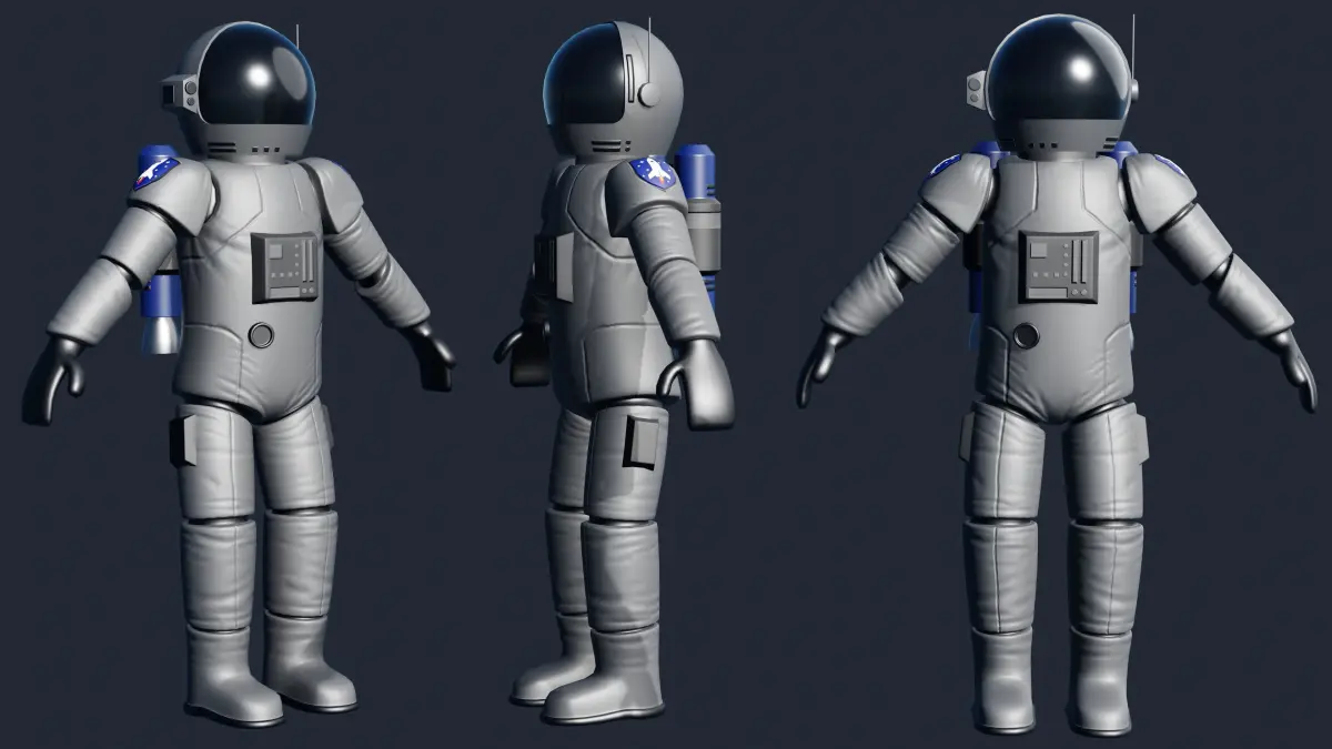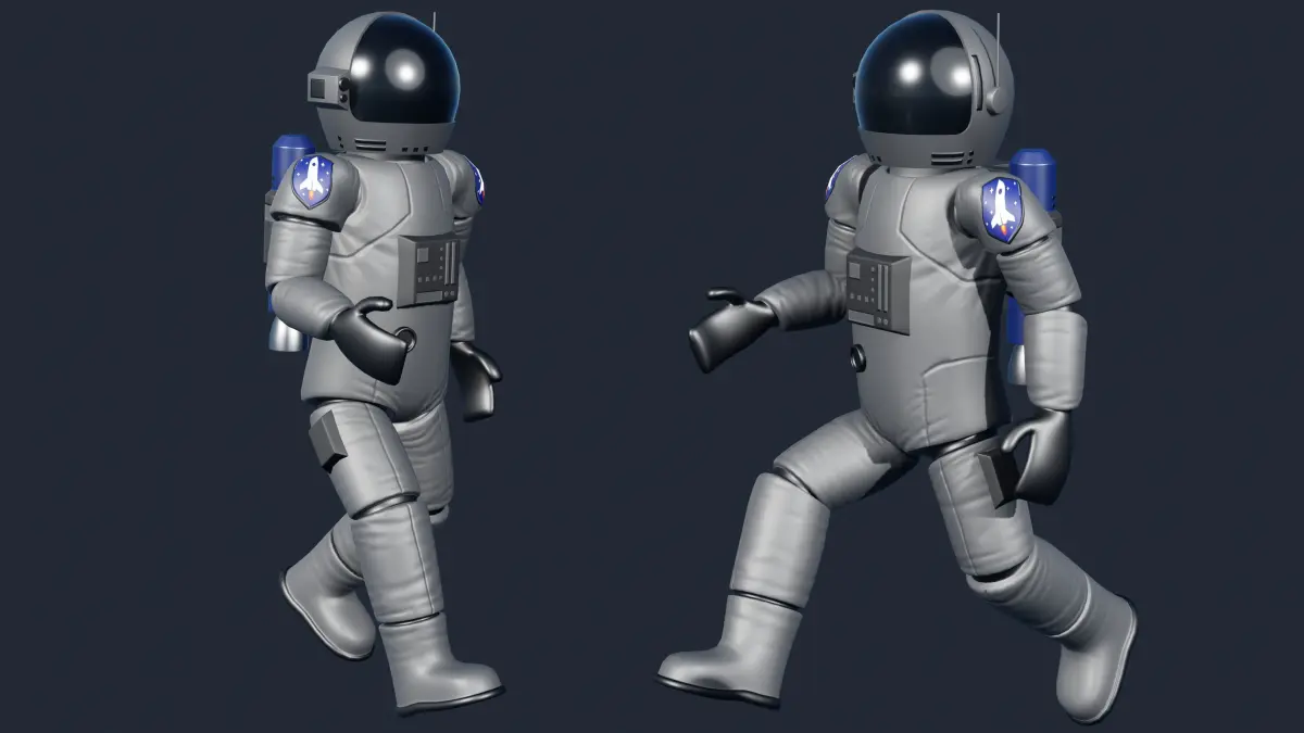 Stylized rigged astronaut created with Blender and rendered in Eevee.