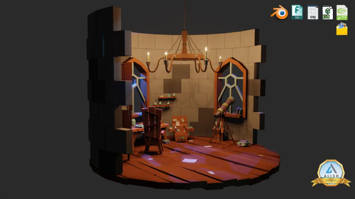 Stylized Astronomy Tower Complete Download Package Includes: -Blend File -FBX -OBJ -STL -GLB -PLY -Textures (Color, Normal, Roughness & More)