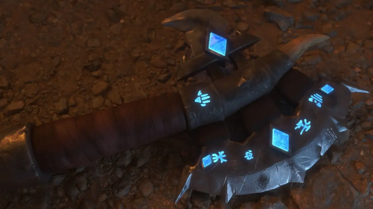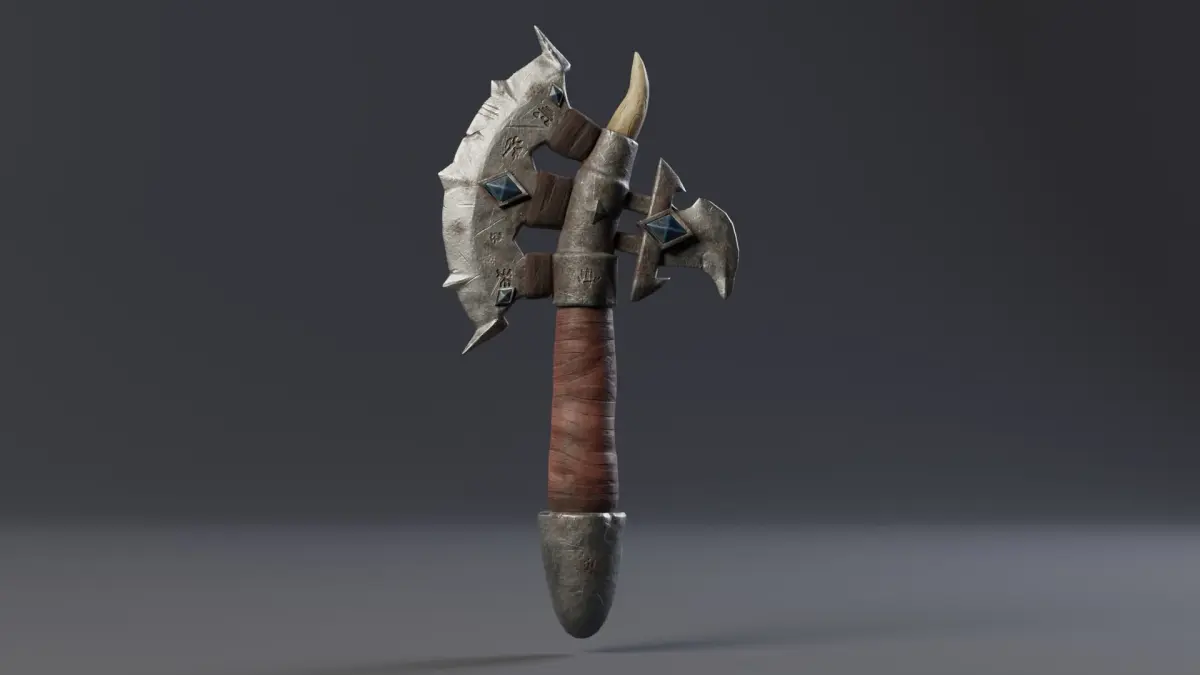 The axe captivates with its stylized aesthetics and features mysterious crystals that glow during combat, creating a stunning effect. This weapon is game-ready, with only 4730 triangles, ensuring optimal performance.