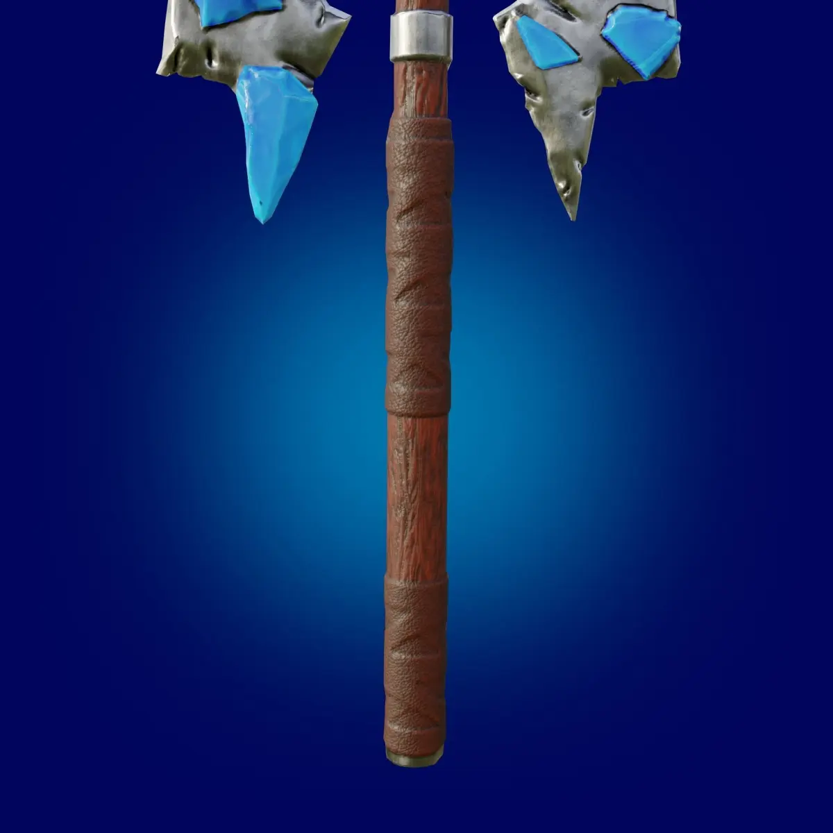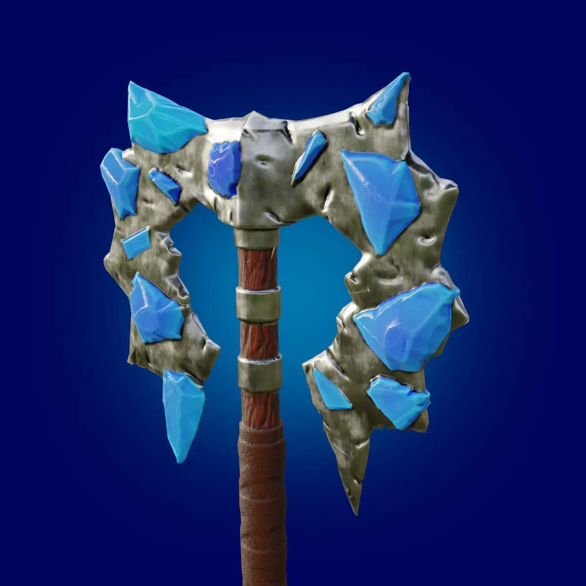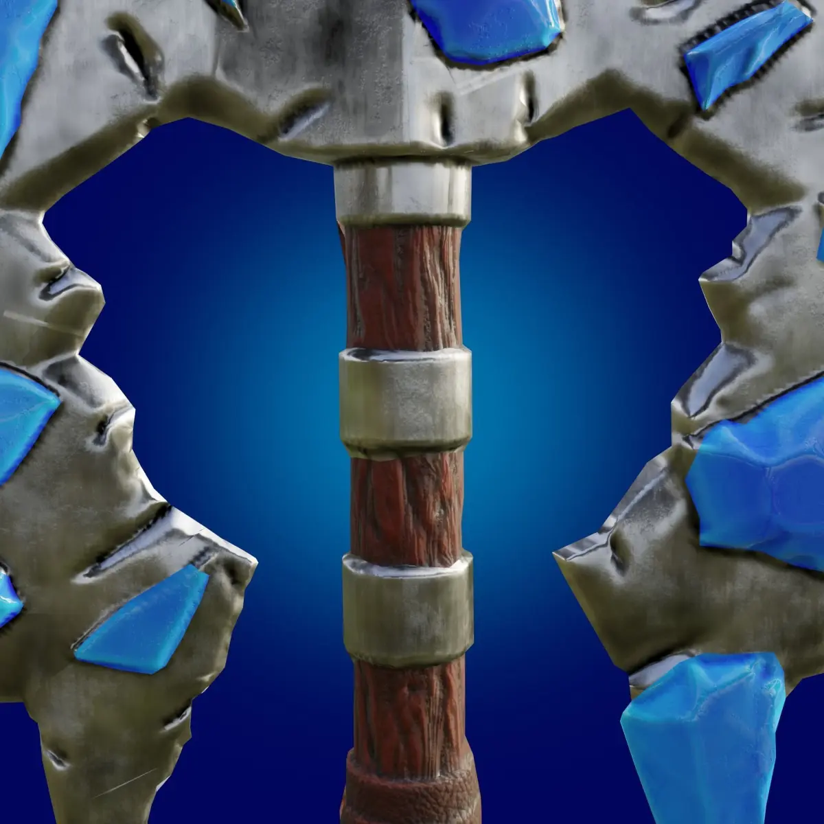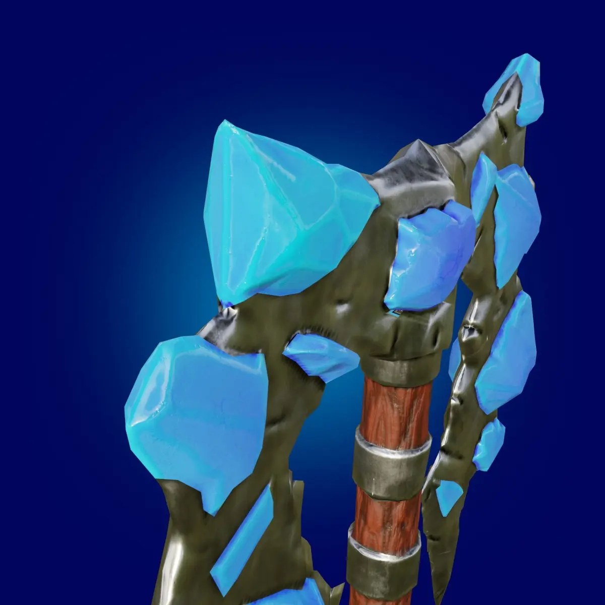 Stylized axe secira battleax Weapon with ice crystals in style skyrim Its so great weapon for you games project Even Vikings would like to fight with such weapon PBR low-poly game ready verticles 3758faces 3585