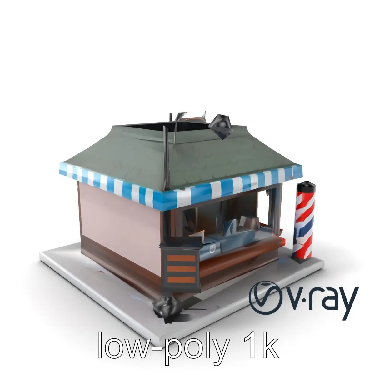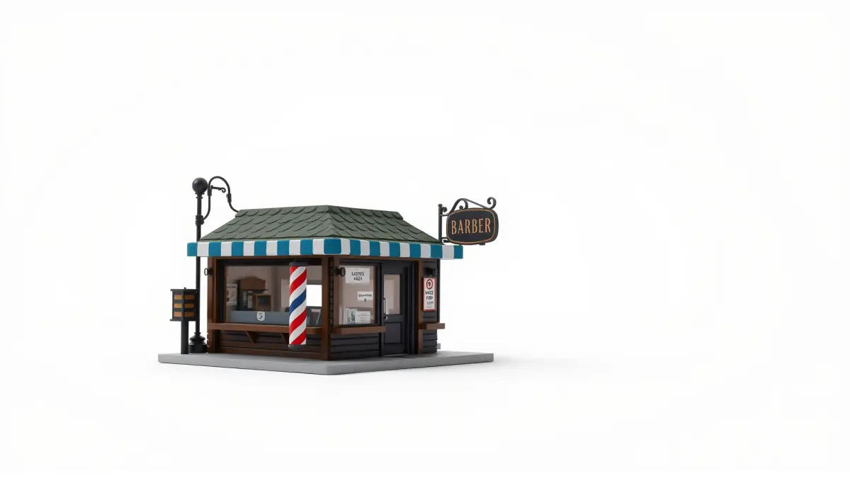 This stylized barber shop model is perfect for urban or nostalgic environments, suitable for both realistic and playful settings. It features characteristic elements such as a striped pole and vintage sign, adding charm to any scene.