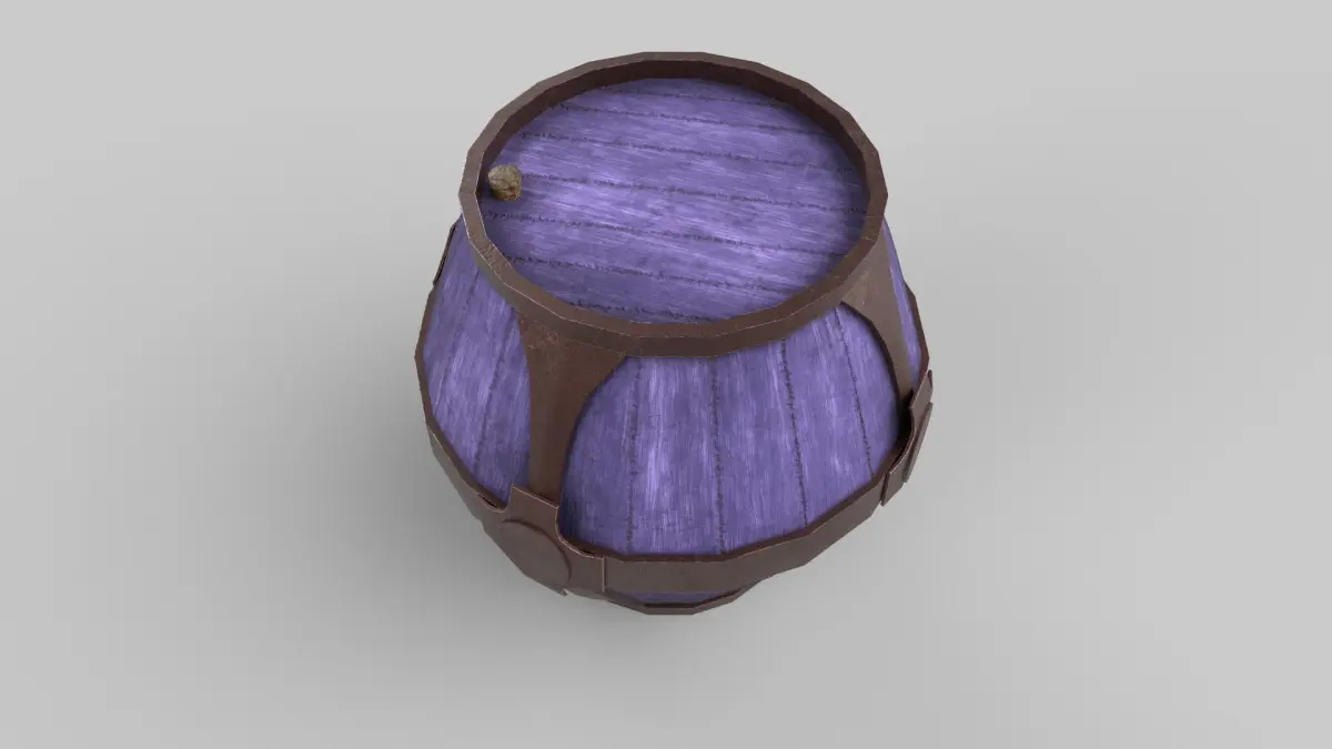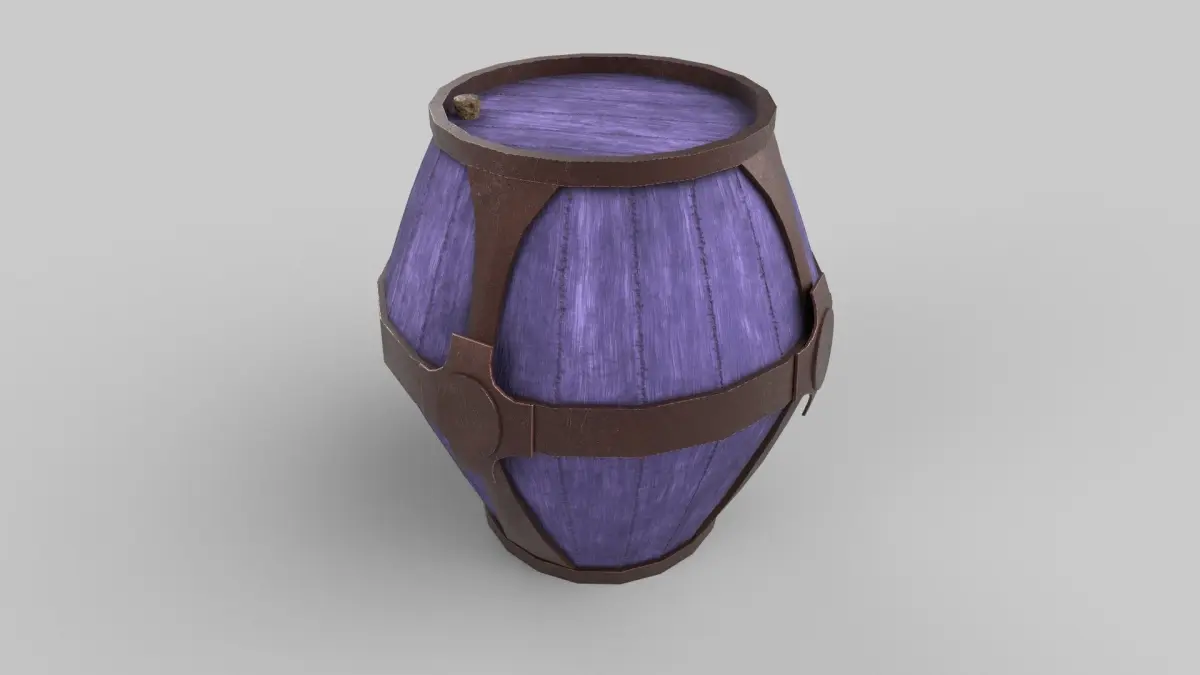A 3D model of a stylized barrel.