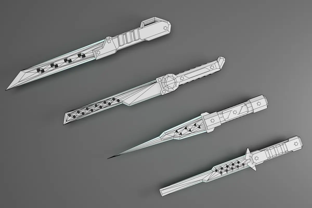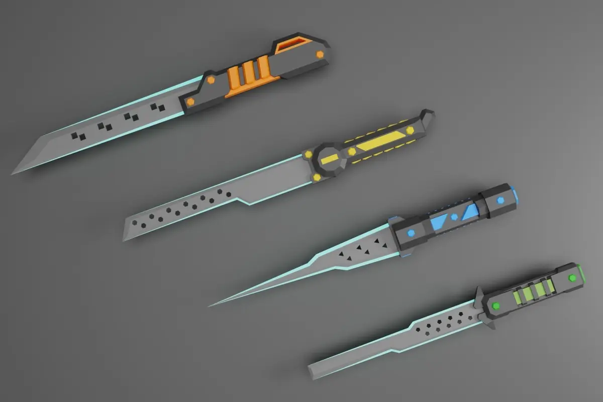Four stylized sci-fi battle knife assets for your fps/action/RPG or even strategy game. Also, you can use it for other purposes such as visualization, animation, etc.