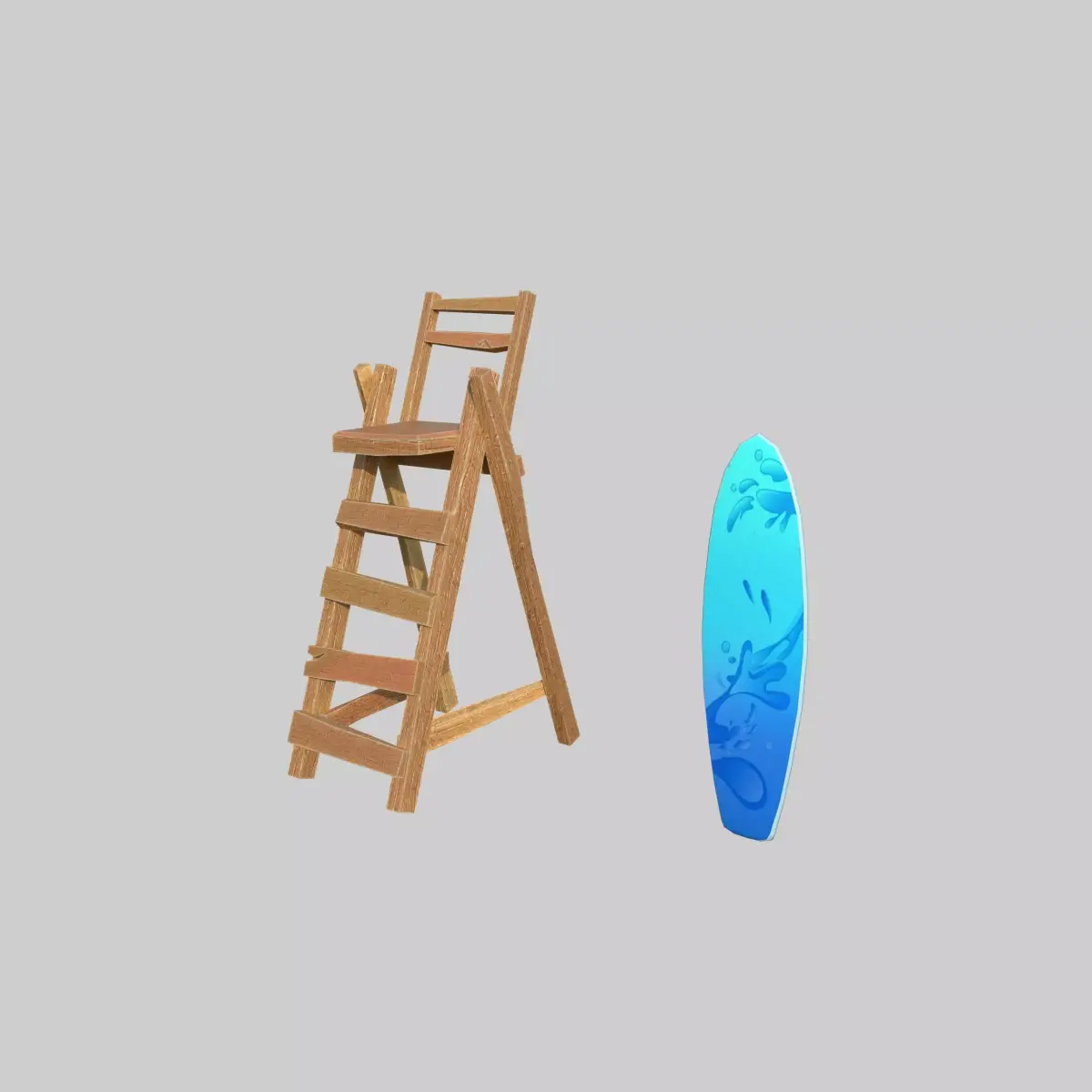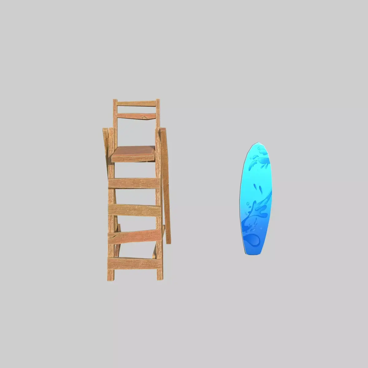 A beautifully stylized Beach Chair & Surfboard 3D Prop Set, perfect for tropical environments, seaside levels, resort scenes, and summer-themed games.This asset pack includes: