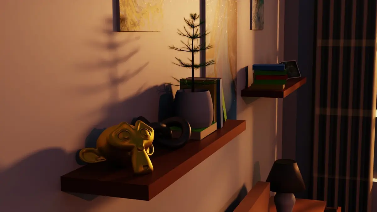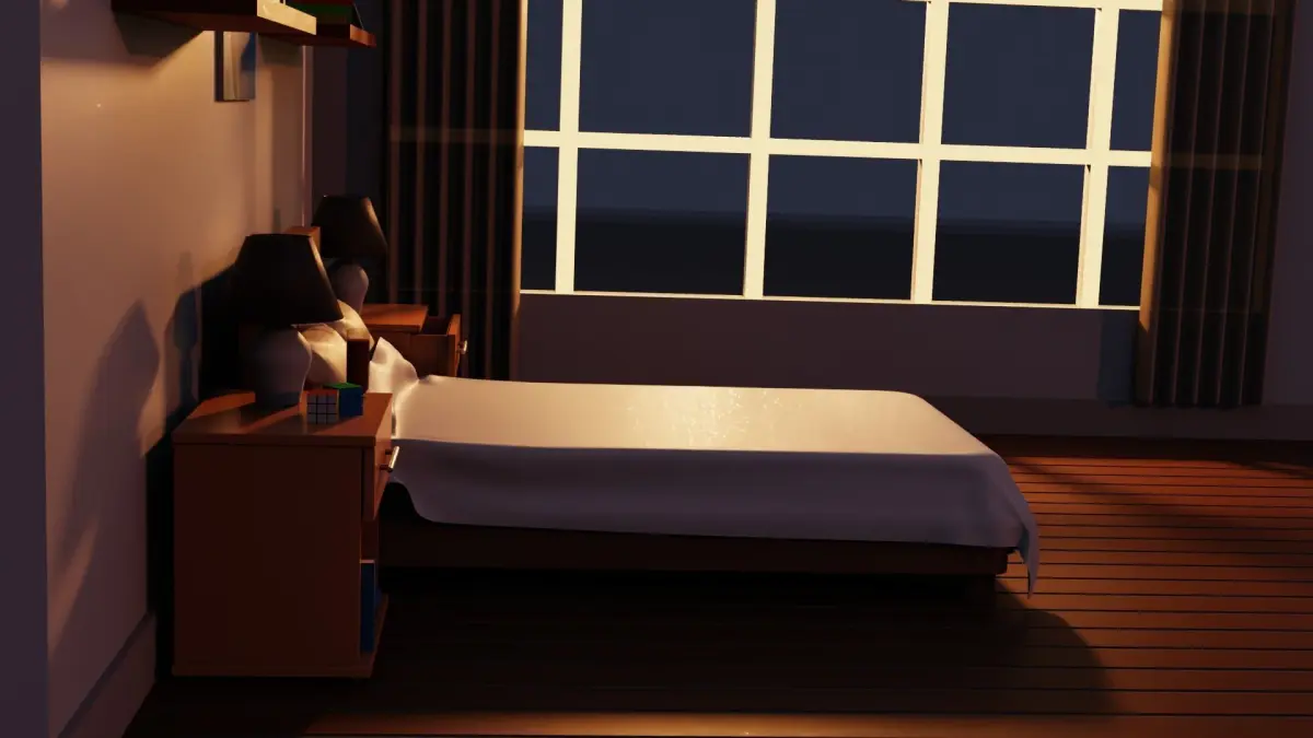A low poly bedroom. This model includes lighting to mimic the morning sunrise, a bed, lamps, two rubik's cubes, glass of juice, books, monkey, plant, three painting, two photos, curtains and shelves.If you like what you see leave a like or better download it for only $15. If you have any questions or suggestions leave a comment or message me privately.