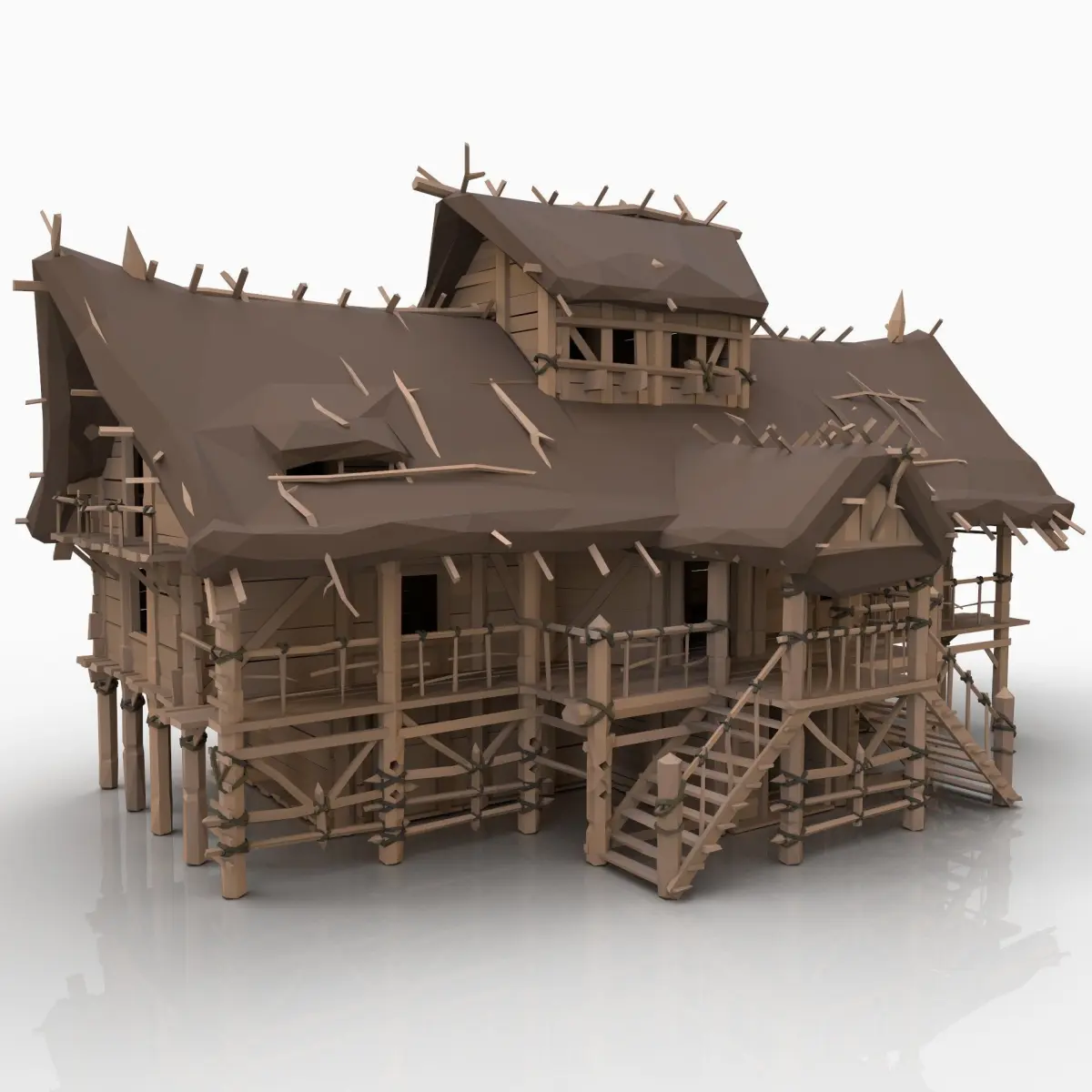 - Next gen, AAA quality, game-ready STYLIZED model of medieval viking wooden cottage house.