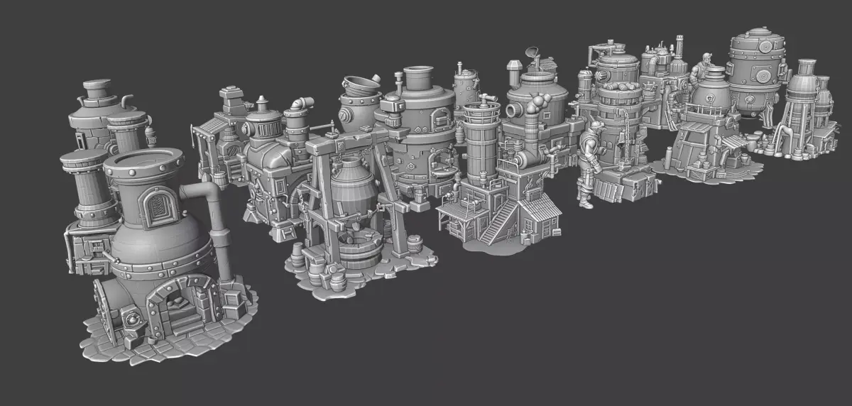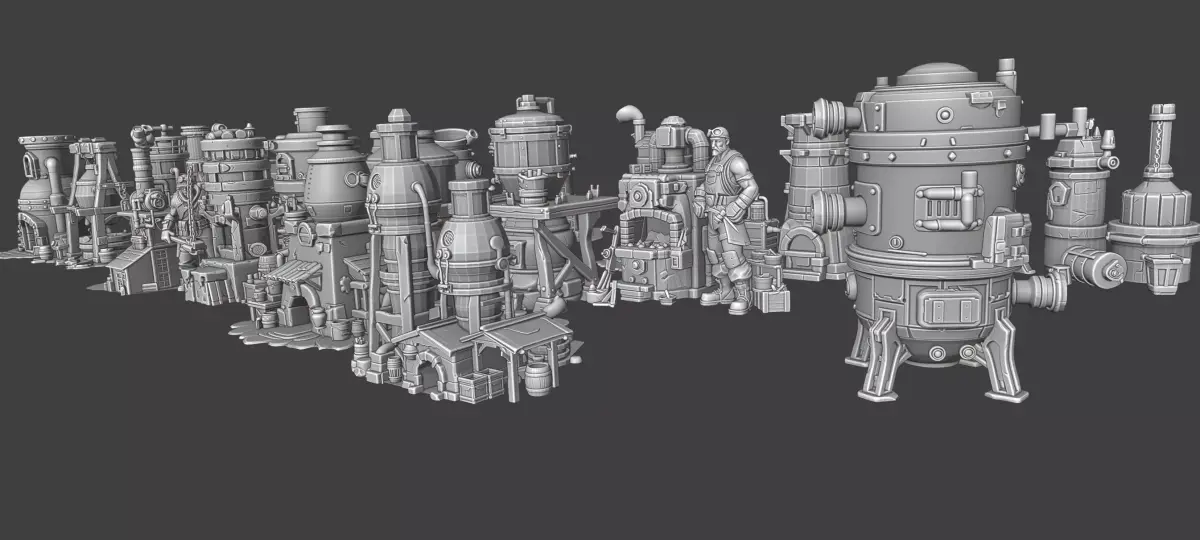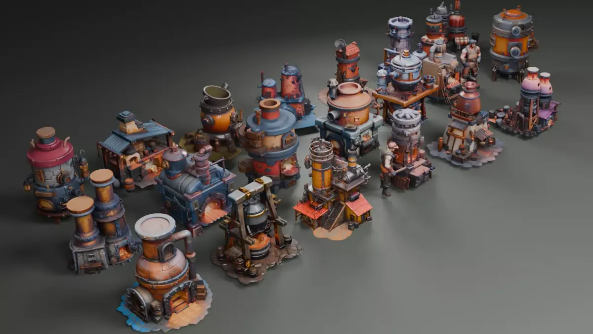 Forges & furnaces (various shapes & sizes)Workbenches, anvils, crafting stationsProps: barrels, metal parts, tools, pipes, decorationsClean topology & polished UVsOptimized for games & real-time engines