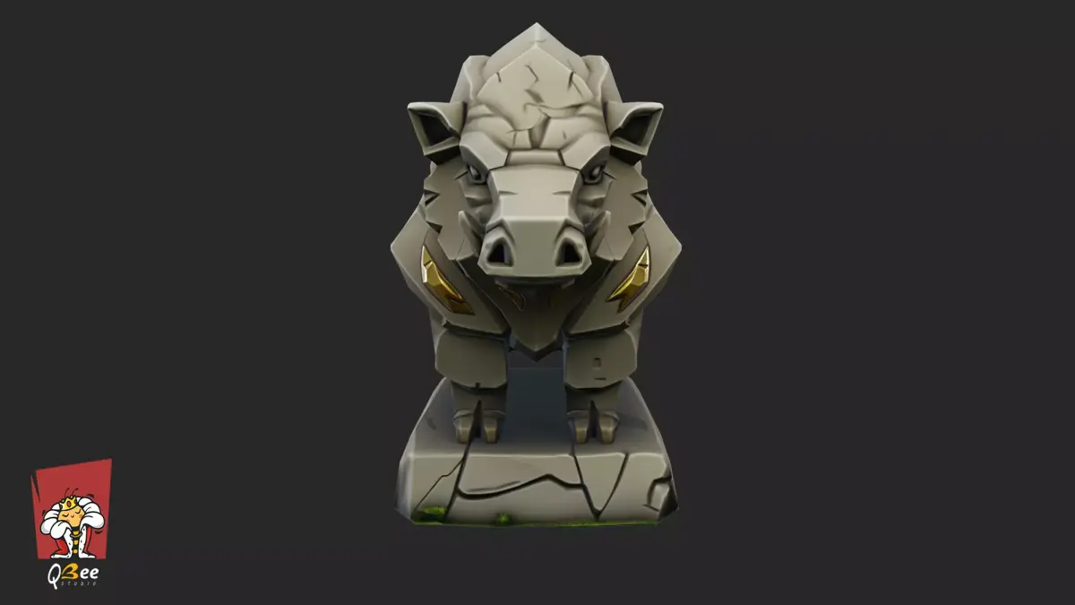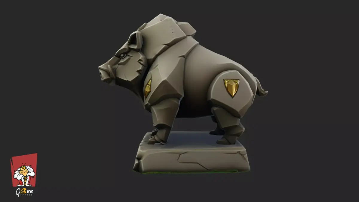 A stylized stone boar statue symbolizing strength and resilience, ideal for fantasy, medieval, or mythological environments.