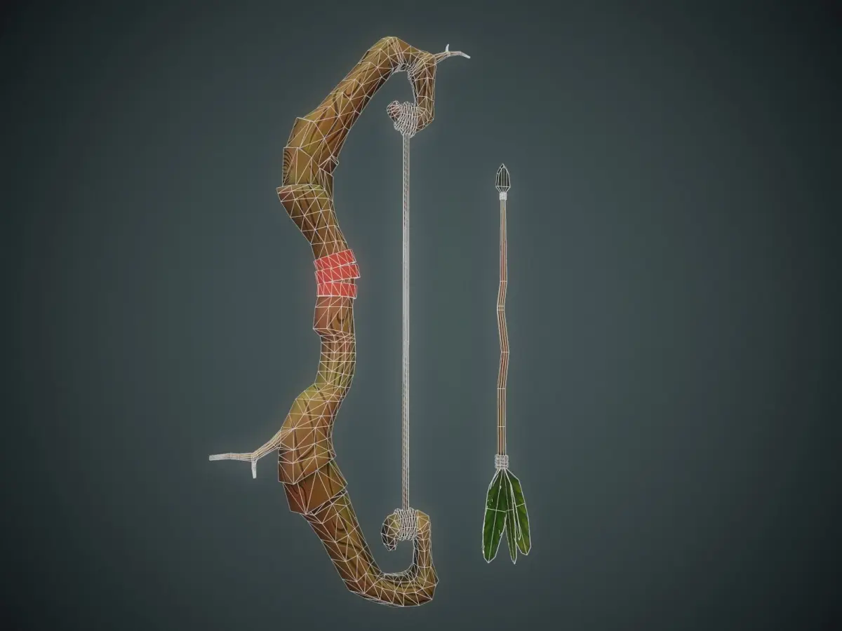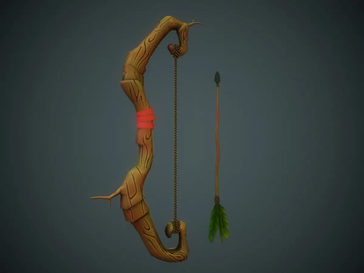 Gaming low-poly stylized wooden bow.