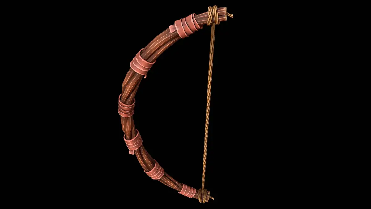 A low-poly model of a Stylized Bow doesn't contain any n-gons and has optimal topology. The archive includes 2K textures: base color map, metalness map, normal map (OpenGL), and roughness map. Images and video were rendered in Marmoset.