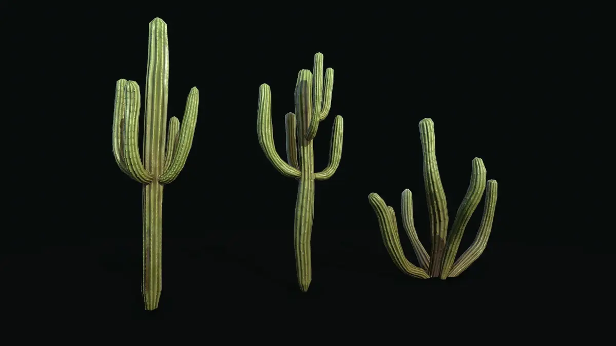 Stylized large cactus low poly model for PBR shader. texture 2k Albedo, Metallic, Roughness,AO, Normal map include: 3ds max file obj Fbx