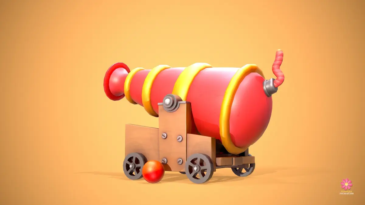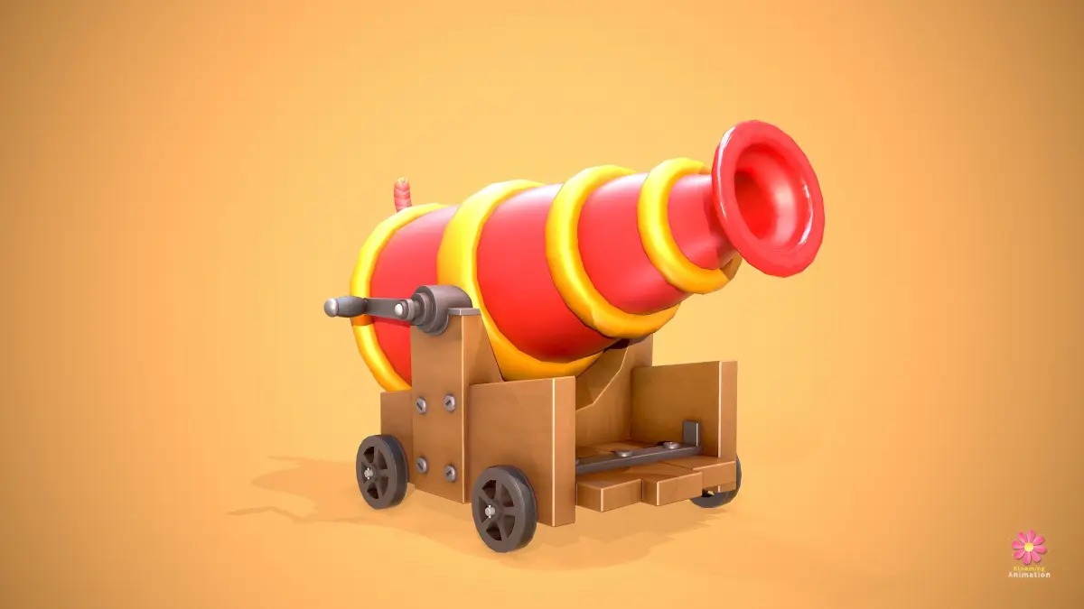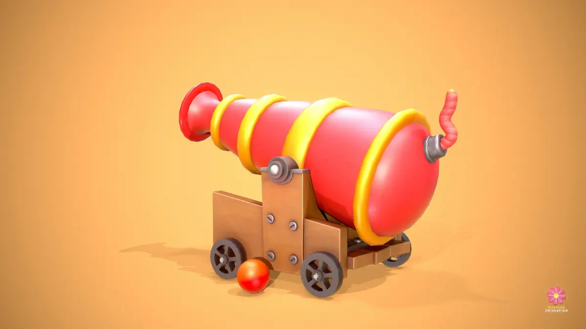 Cartoony 3d model of cannon that destroys enemies and obstacles.