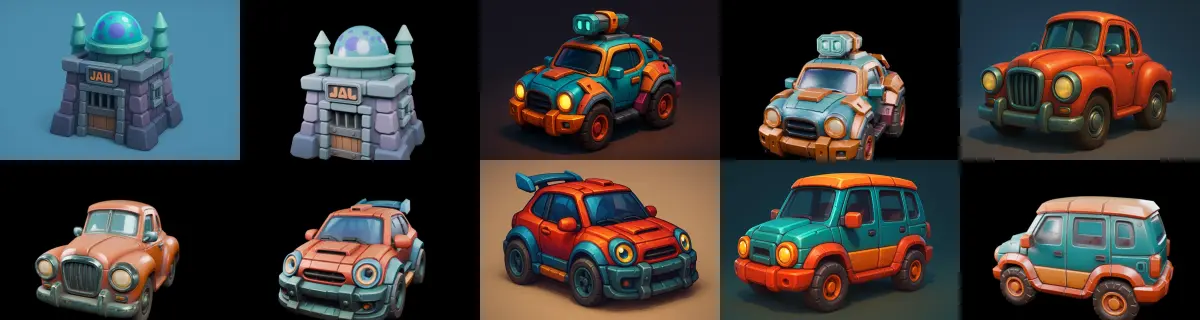 Stylized Car Advanced model bundle 8 pack 100 glb 3D model