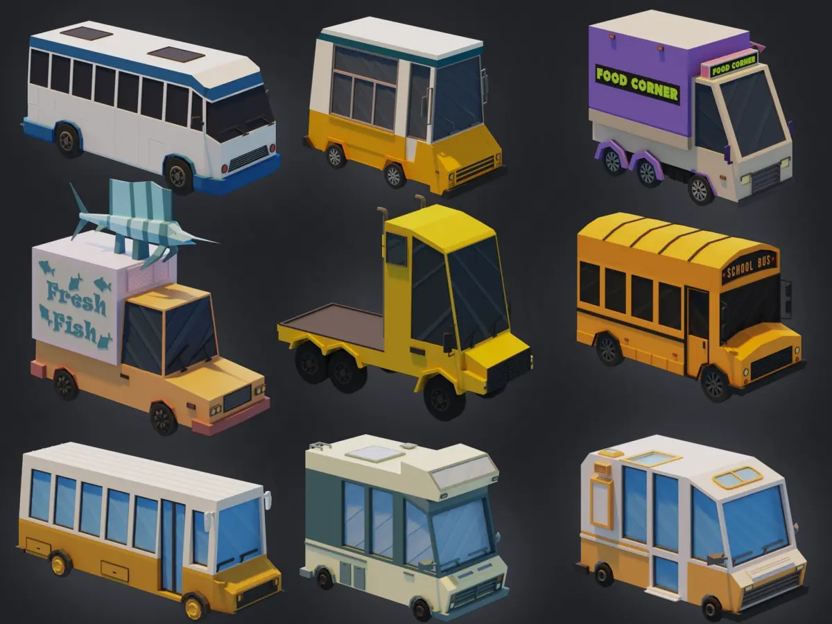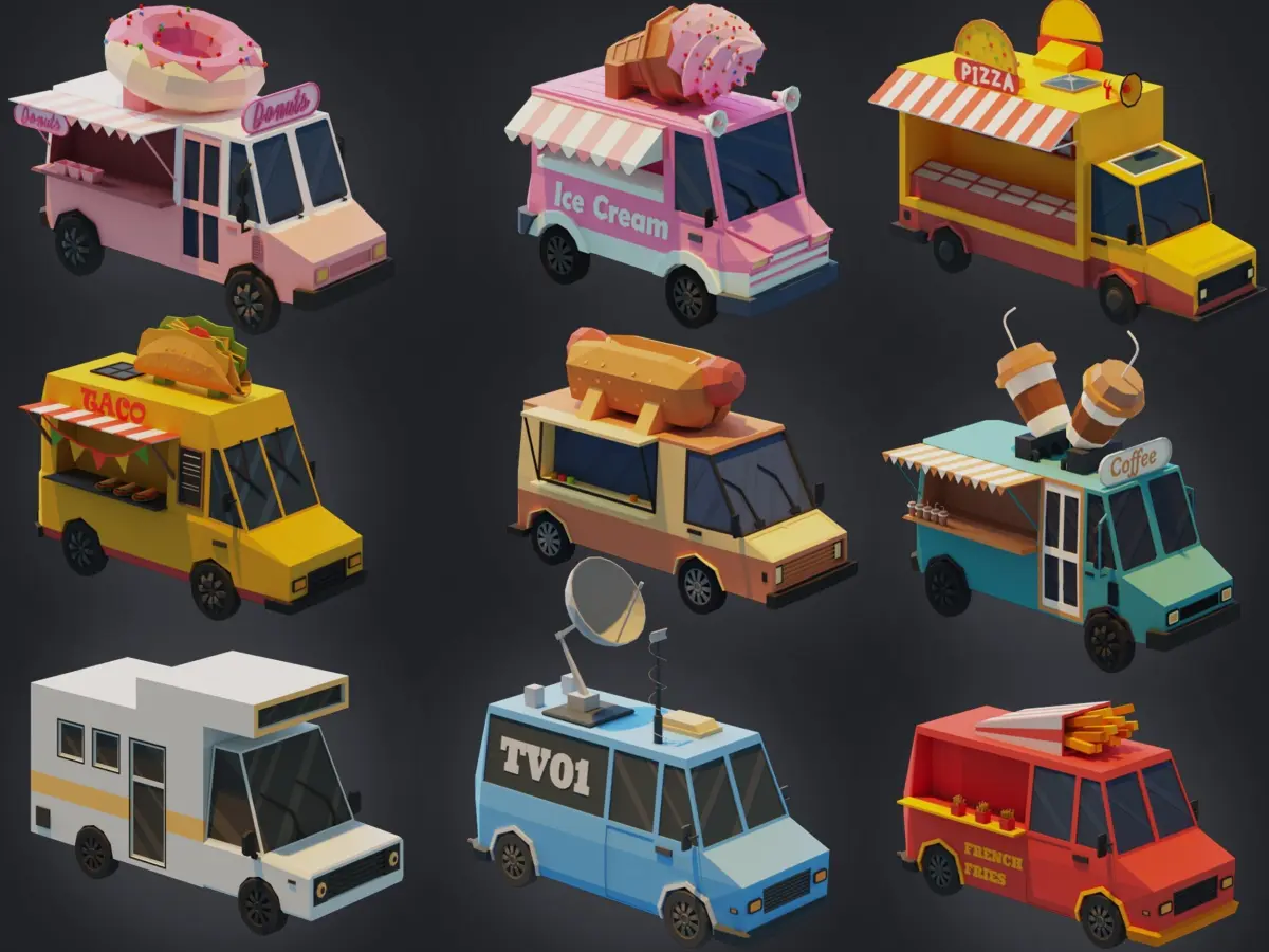 Food trucks (e.g. burger truck, taco truck, donut van)