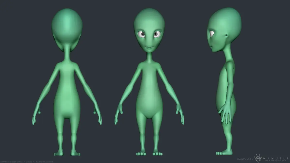 High quality stylized model of a classic grey/green Alien.