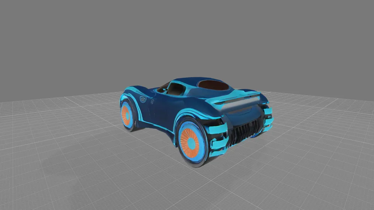 This is a low-poly (or high-poly, depending on your model) 3D model of a concept car featuring a retro-futuristic design. With its smooth curves, vibrant cyan accent lines, and eye-catching orange rims, this model is perfect for a wide range of creative projects.
