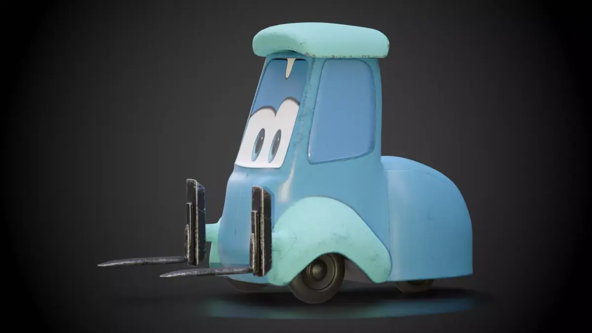 The forklift includes detailed forks, wheels, cabin, and expressive eyes integrated into the front design, giving it a charming character look.Optimized geometry with clean topology, suitable for real-time rendering and animation.