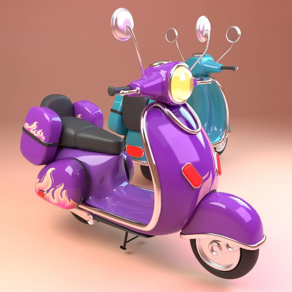 Stylized cartoon scooter in theme : Fire and Water.