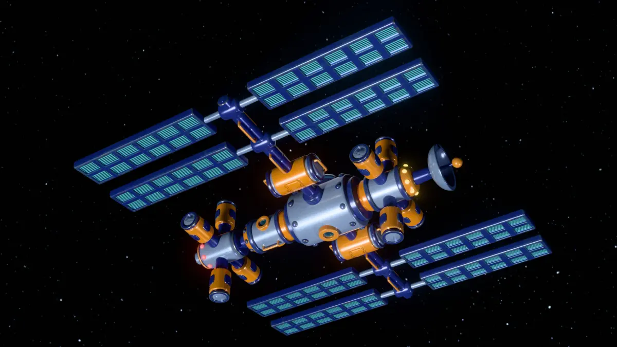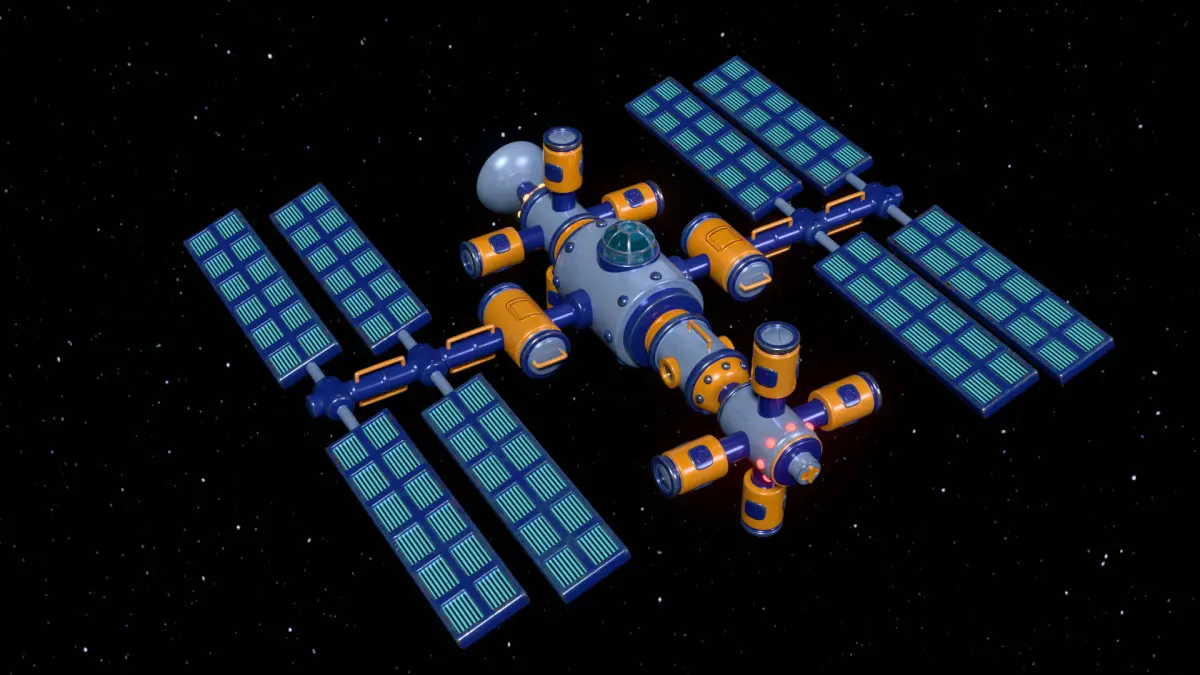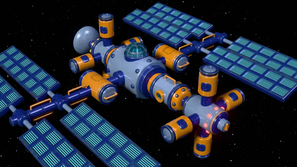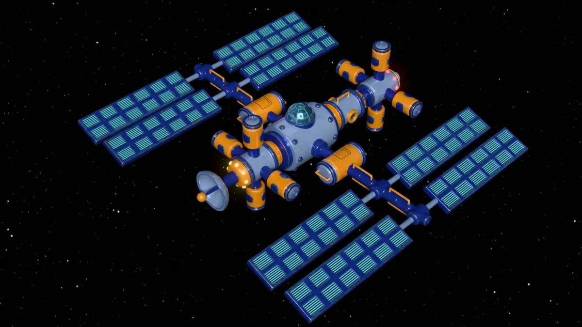 A cartoonish space orbital station equipped with solar panels, several living and research modules, viewports (portholes), and an observation dome (cupola). Made in Blender 3D 4.4 (Cycles/Eevee materials). UV Layout maps and Image Textures resolutions: 4096x4096. Textured in Substance 3d painter.You can apply the Subdivision Surface modifier.