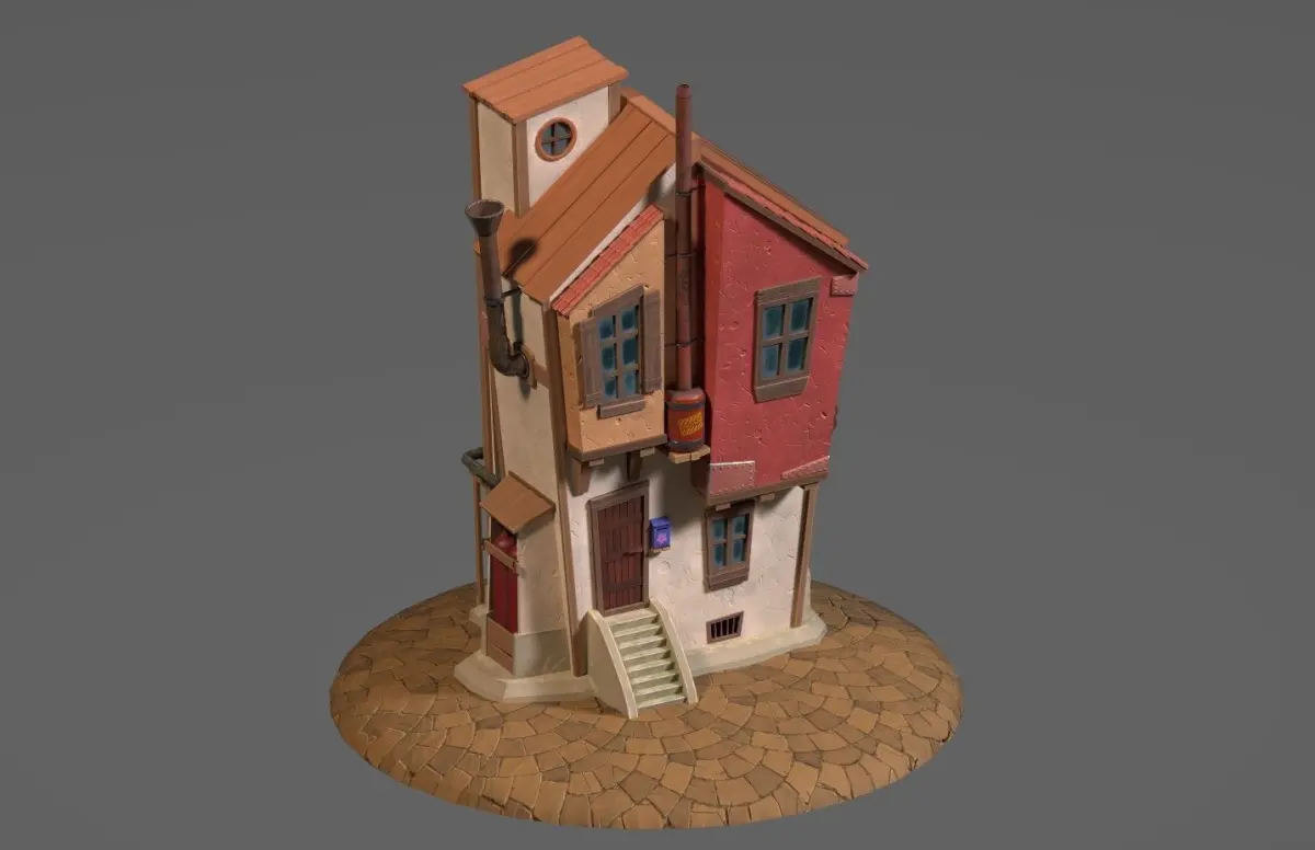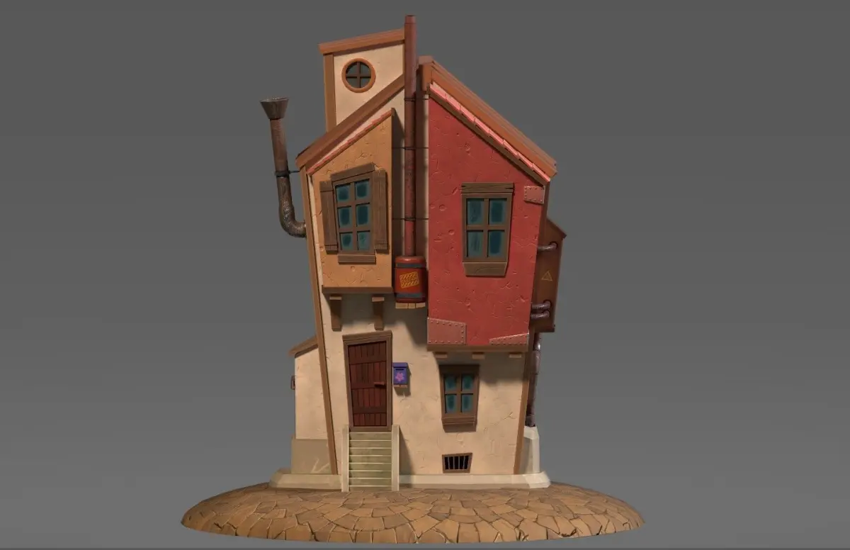 Low-poly stylized game-ready hand-painted cartoon steampunk house model made in 3ds Max 2017 and textured in Substance Painter. Textures and UV groups are separated into two 4k modules - they are not included into fbx file so textures have to be plugged in manually). UVs can be seen on two last screenshots provided above.
