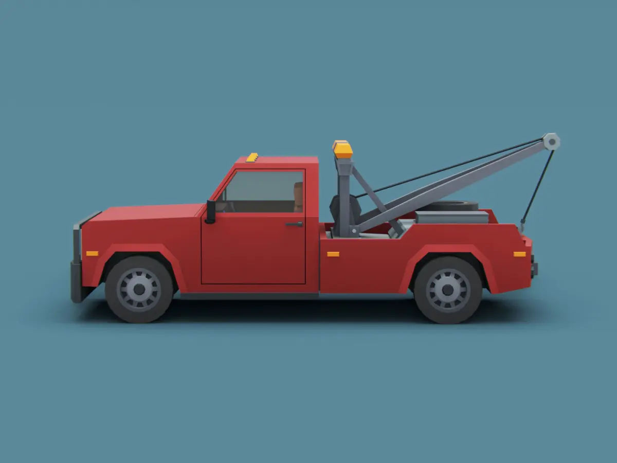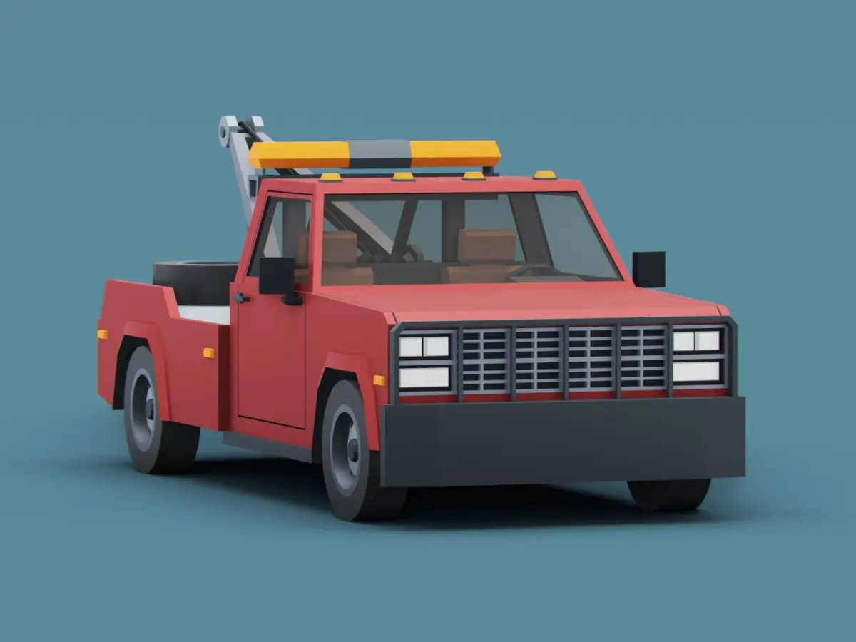 High quality low poly 3D model tow truck. Classic american vehicle style 80s.