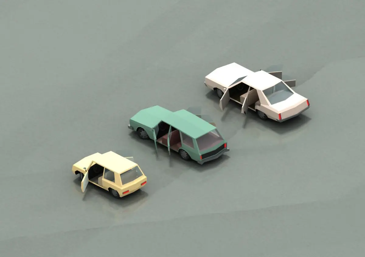 This set is free, if you are satisfied with it, you can also buy an extended set. This pack contains 3 different cars. Simple interior, separate wheels, separate door. There is a separate material for the body color, so you can easily change it. All models share the same material and texture, atlas, for optimum performance on mobile devices. 1024x1024 texture maps - diffuse, roughness, metallic, emission Included formats: 3dsMax (2014), OBJ and FBX