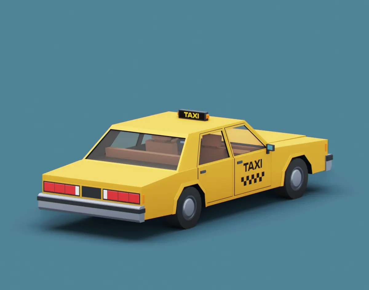 High quality low poly 3D model sedan taxi cab. Classic american vehicle style 80s.