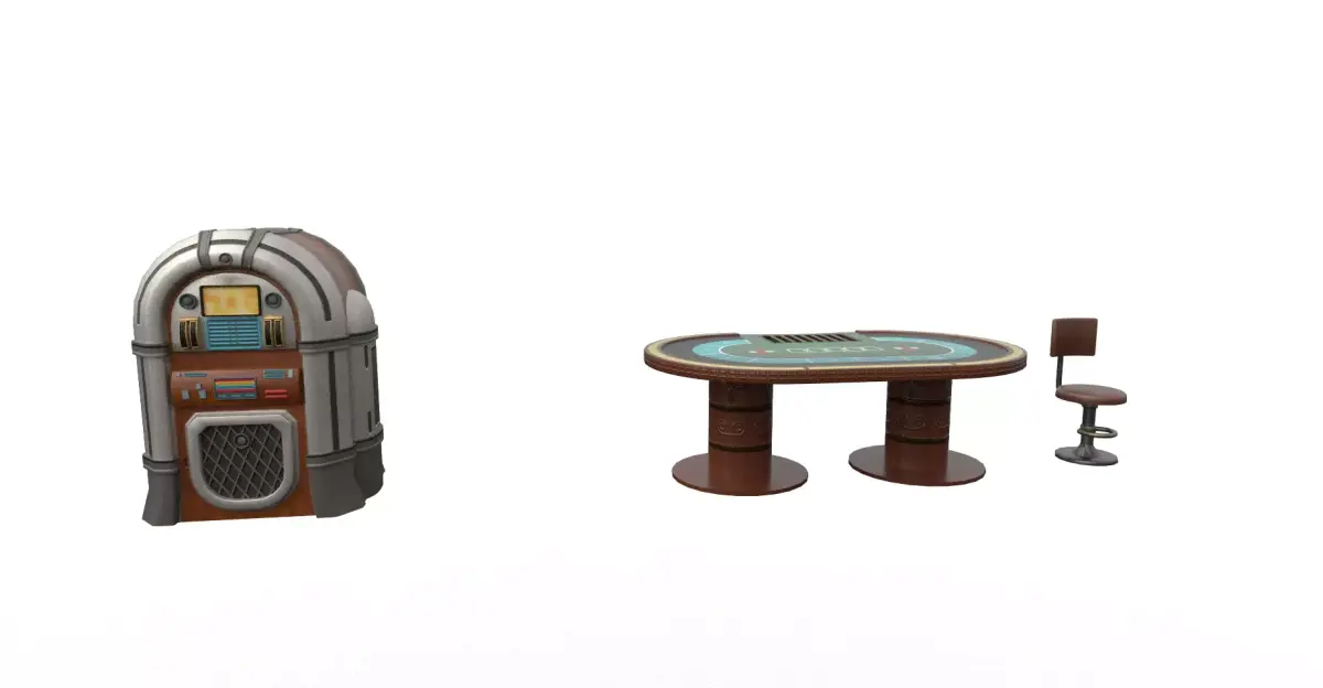 Poker / Card Table: Detailed table with seating area.