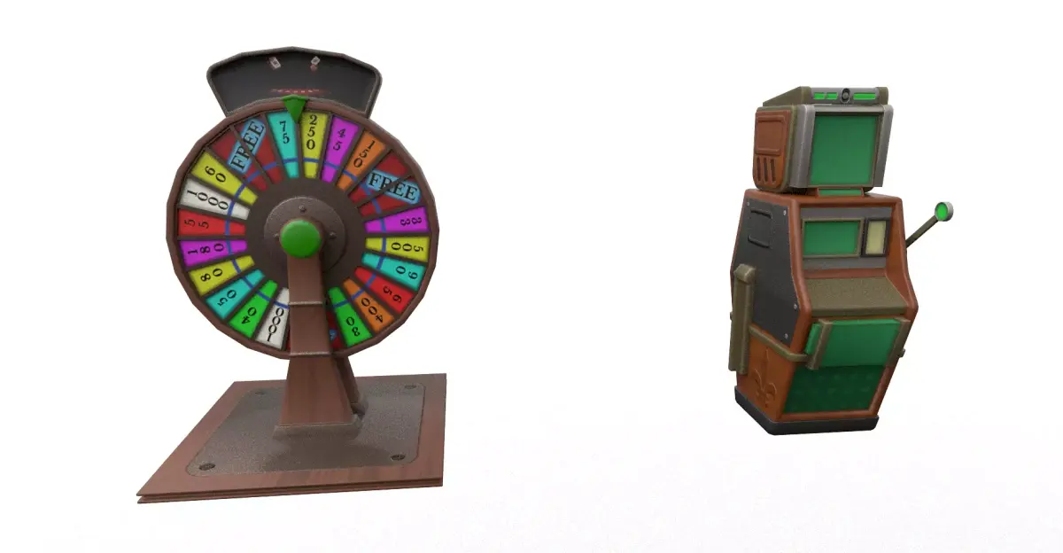 Slot Machine: Stylized retro design (or Jukebox/Cabinet depending on design).