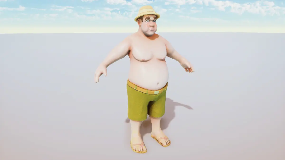 Features:Stylized model of character Tourist for Blender & UnityTextures 2048x2048: Base Color, Mask Map (Unity HDRP Standart), Normal Map (OpenGL)100% quads, clean topology, subdivision readySymmetrical with the origin point at the center of the grid floor (ready for mirroring)Low polygon countShapekeys on main character's emotions (brows and lips: up, down, anger, smile; eyes: blink and wide open)