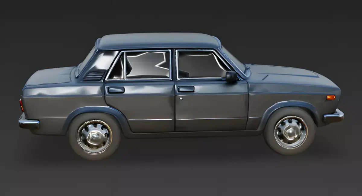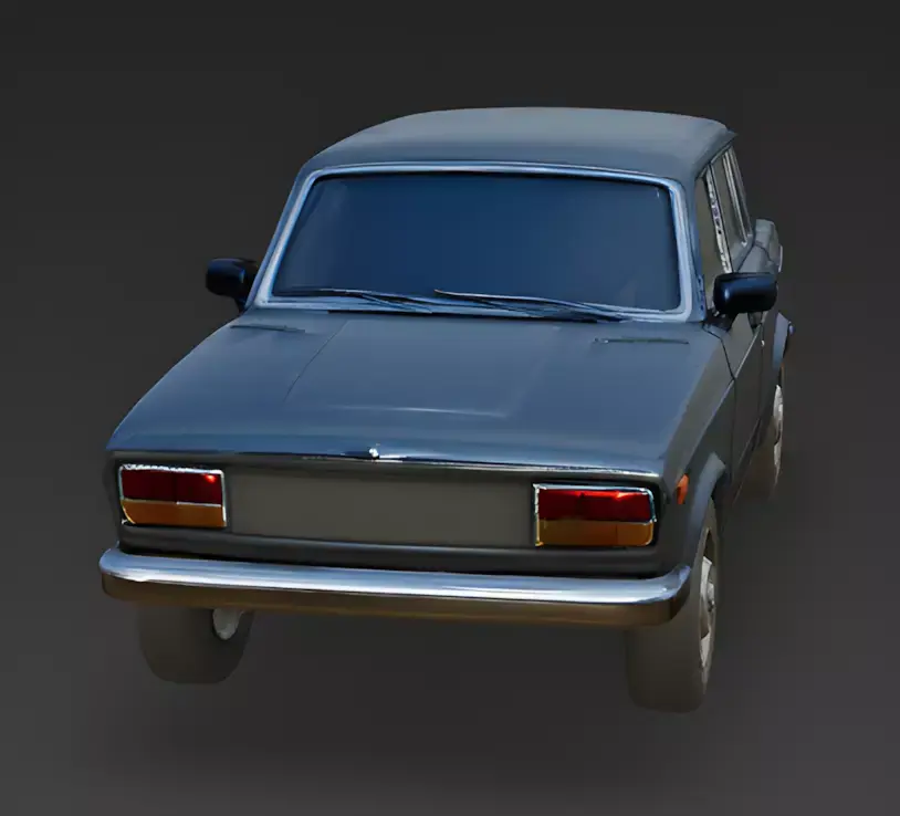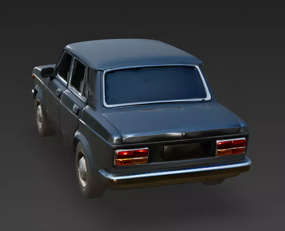 Chunky Retro WheelsThe car sits on oversized, simplified wheels with silver hubcaps. The thick black tires and basic rim design reinforce the toy-like proportions and ensure the model remains visually readable from a distance in a game environment.
