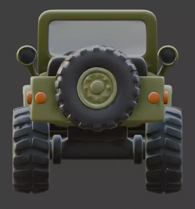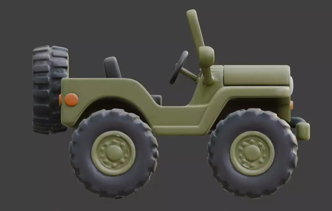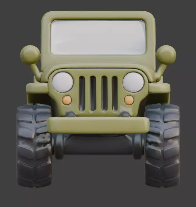 Classic Offroad Design: Incorporates recognizable military vehicle elements like the slotted grille and rugged tires into a friendly, approachable silhouette.