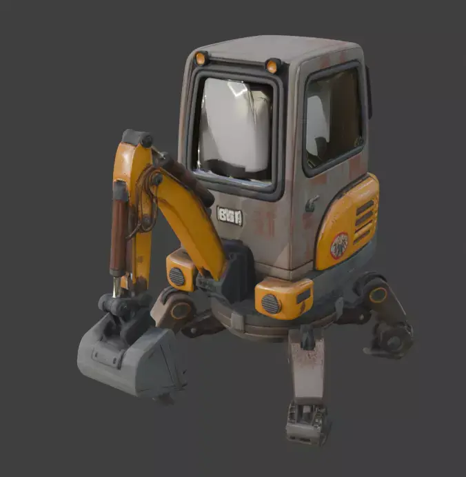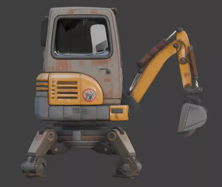 Key FeaturesHybrid Quadrupedal Base: Features four independent articulated legs with integrated track feet, giving the excavator a unique walking industrial silhouette suitable for uneven sci-fi terrains.