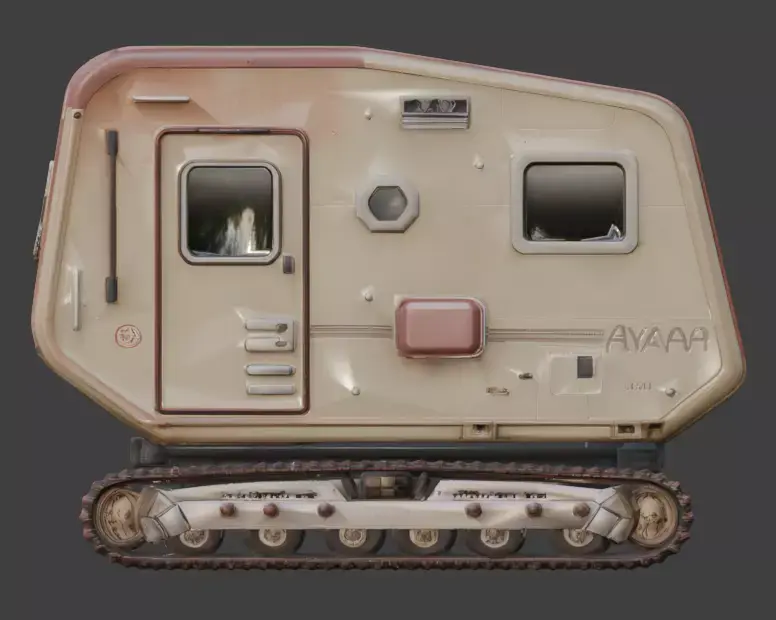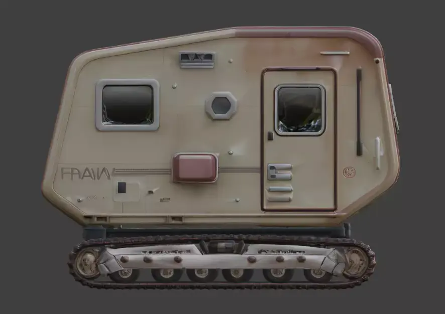 Rugged Tracked Propulsion: Features a detailed continuous track base, giving the trailer a sturdy all-terrain look suitable for polar or extraterrestrial environments.