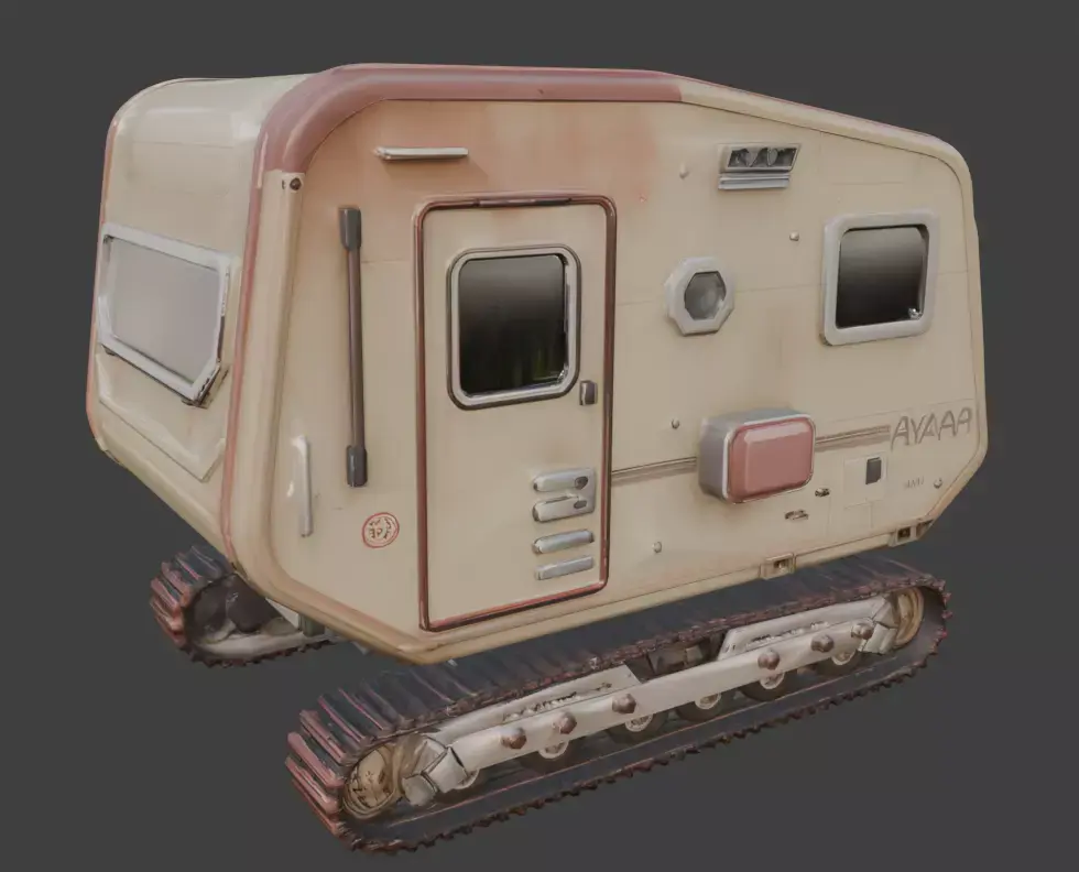 TagsChibiStylizedTrailerModularSci-FiTrackedAll-TerrainVehicleCartoonCute3D-ModelGame-AssetDesert-TanIndustrialExplorationPost-ApocalypticAdventure