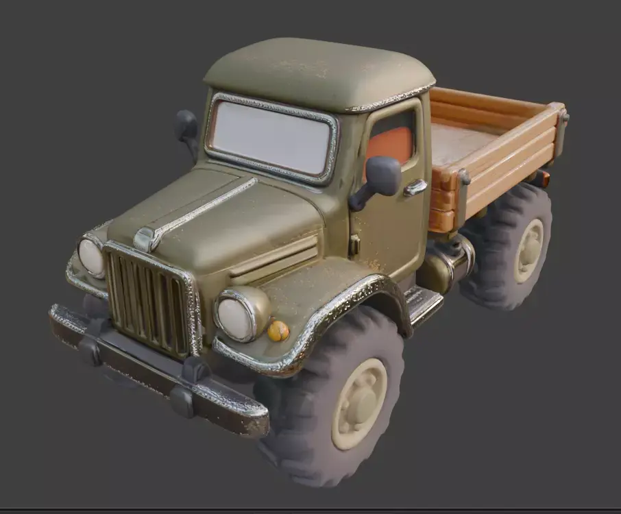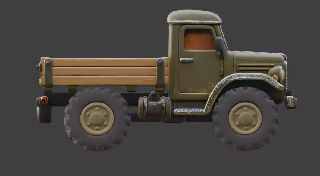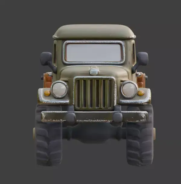 Key FeaturesChibi Military Aesthetic: A unique, adorable miniature recreation of a classic WWII-era truck, featuring exaggerated proportions and soft, rounded geometry that fits perfectly in cartoon environments.