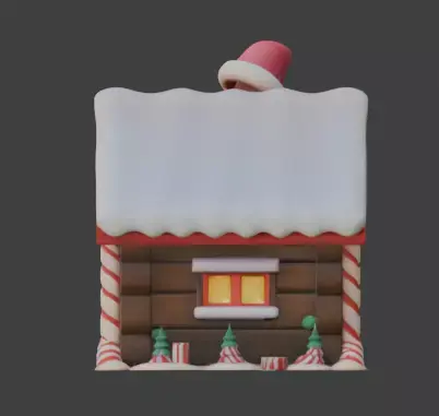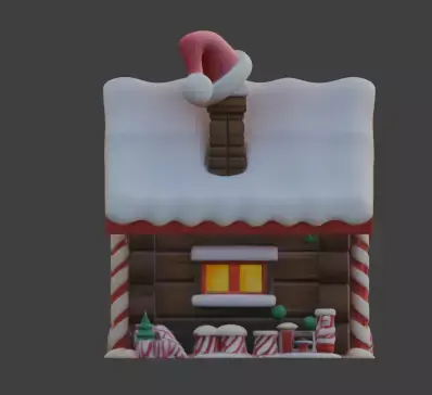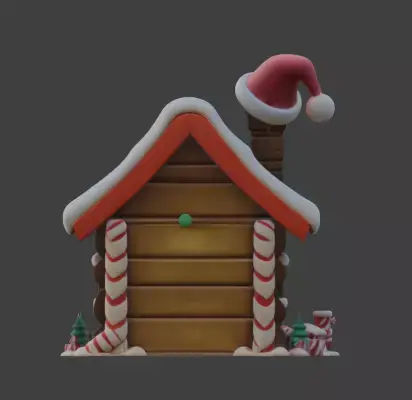 A high quality 3D model of a festive gingerbread house, designed for professional use in holiday-themed games, virtual environments, and digital art. This model features a charming aesthetic with candy cane pillars, frosting-covered roofs, and seasonal wreaths. Please note that this model is not rigged. It is ready for seamless integration into your preferred rendering engine or 3D software.