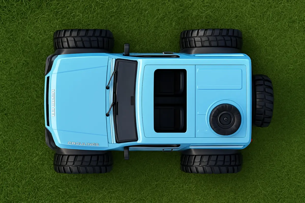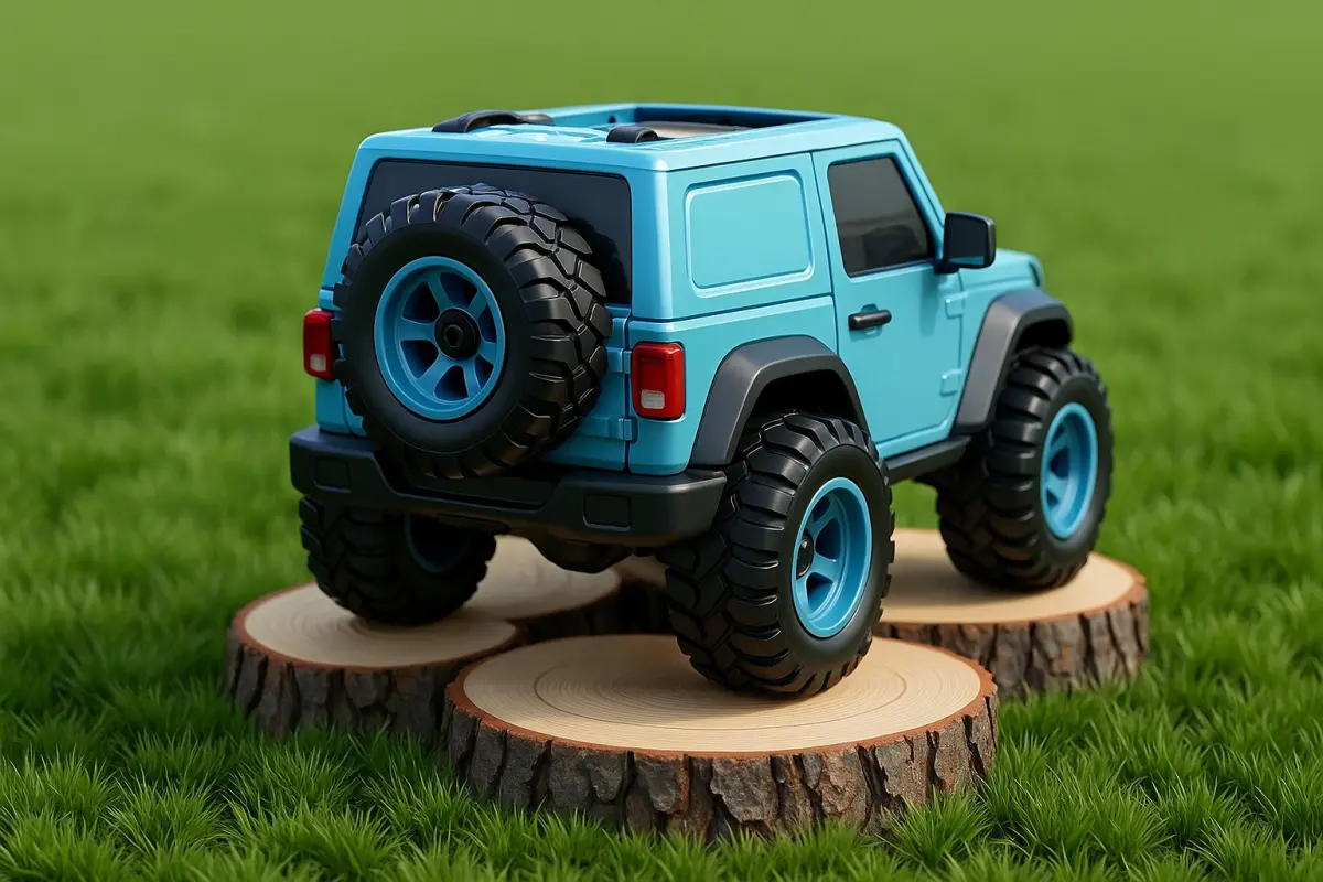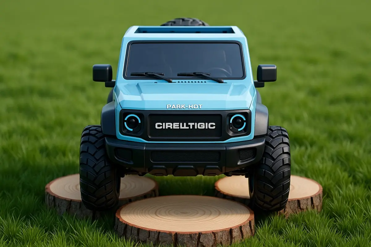 This charming 3D model presents a stylized and compact off-road SUV, perfect for a wide range of creative projects from casual games to animated shorts and whimsical visualizations. Featuring a vibrant blue body, robust black fender flares, and chunky off-road tires with matching blue rims, this vehicle exudes a playful yet adventurous spirit. The simplified, blocky design, along with subtle details like the front grille lettering (CIRELLTIGIC) and circular headlights, gives it a unique, toy-like or cartoonish aesthetic while maintaining clear functionality.