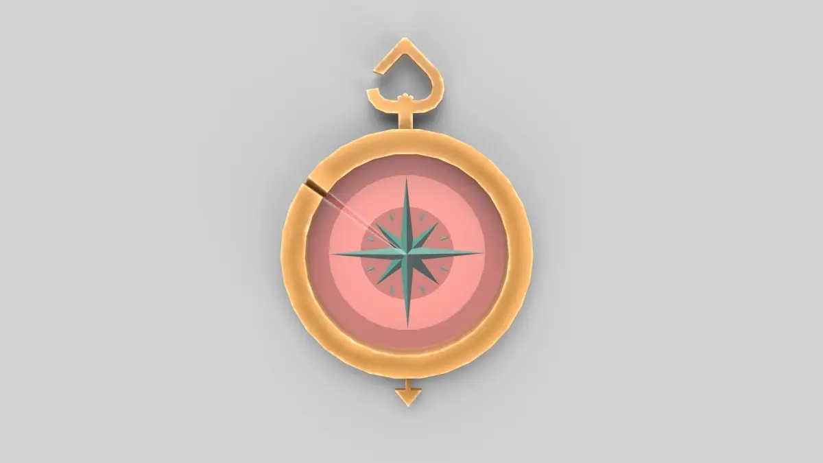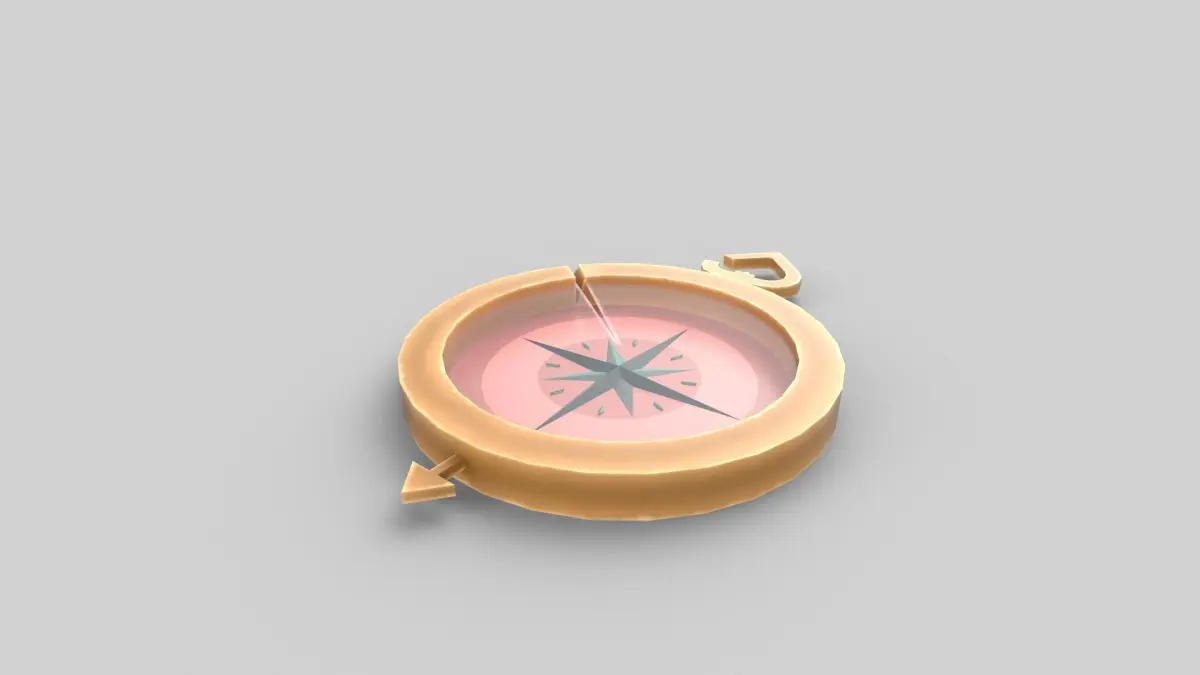 A 3D model of a stylized compass.