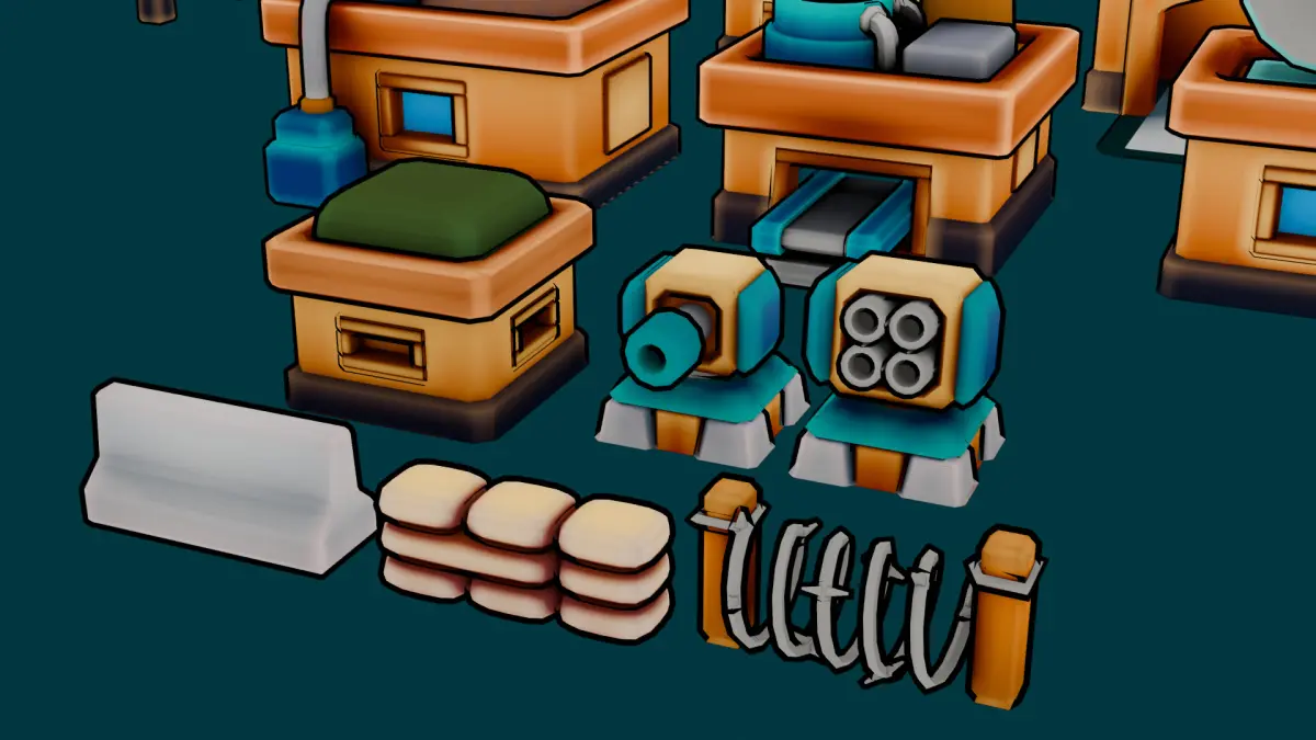 A stylized, cozy-themed military asset pack featuring 14 essential buildings and defense props for RTS and tower defense games. Each model is crafted with soft edges, warm tones, and a friendly visual style — perfect for casual and low-poly environments.