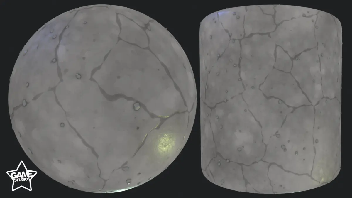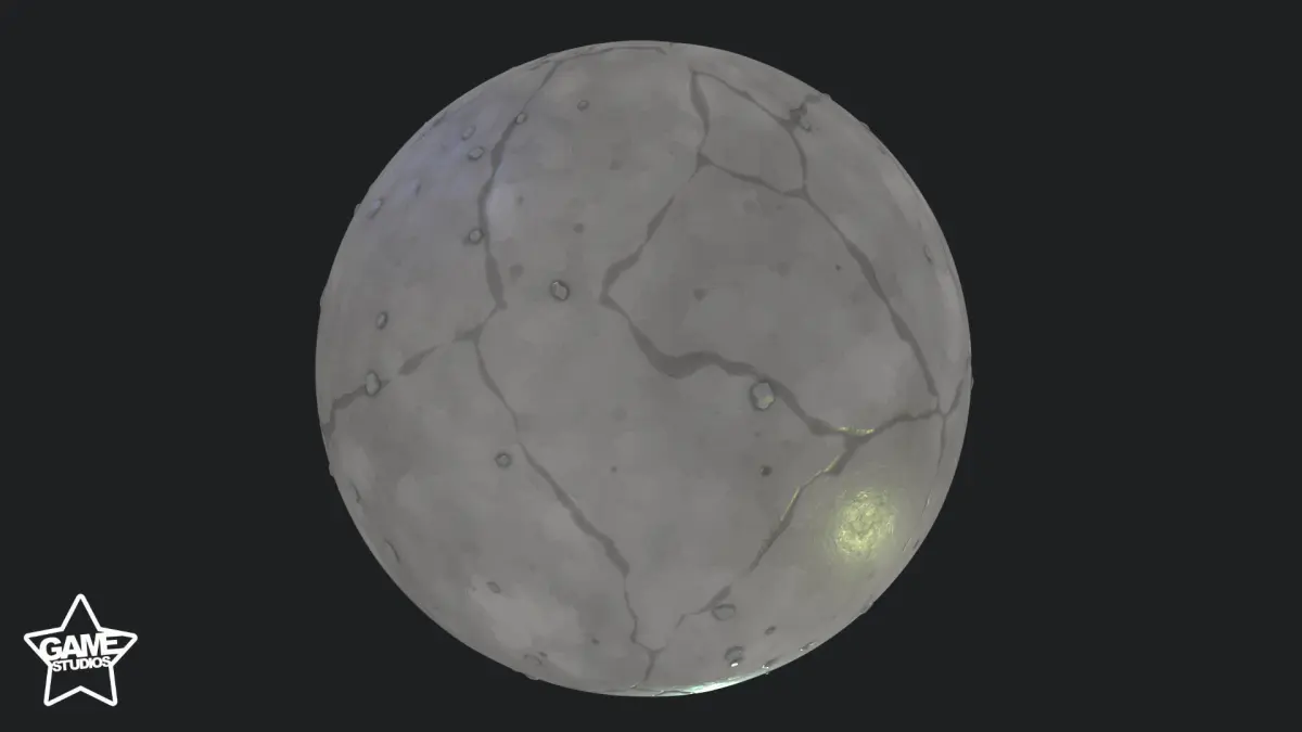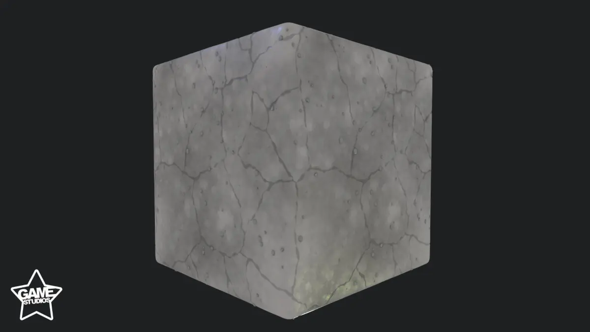 Stylized Cracked Concrete Material was created in Substance 3D Designer and rendered in Marmoset Toolbag.