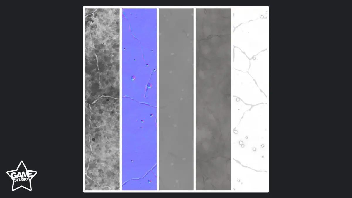 - Five textures included: BaseColor, Height, Normal Map, Ambient Occlusion, and Roughness 2048x2048 pixels in size.